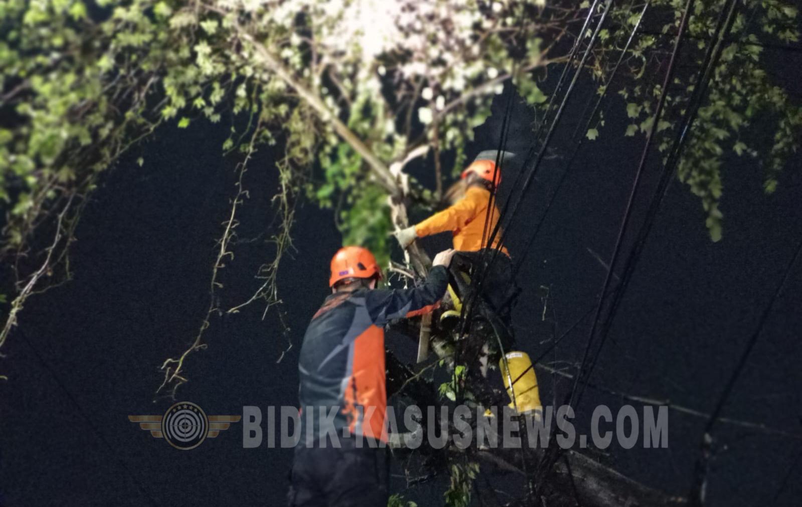 SUKABUMI-BIDIK-KASUSNEWS.COM – Dini hari tadi, beberapa orang personel BPBD kota Sukabumi diterjunkan ke lokasi pohon tumbang di Jalan Pemuda RT 05 RW 05, Kelurahan Citamiang, Kecamatan Citamiang, Kota Sukabumi, Kamis dini hari, (15/1/2026). Peristiwa tersebut menambah deretan bencana di Kota Sukabumi akibat hujan deras dan angin kencang yang terjadi beberapa hari terakhir. Tumbangnya pohon jenis kersen tersebut sempat mengganggu lalu lintas, karena posisi pohon yang menghalangi laju kendaraan terlebih roda empat. Kepala Pelaksana BPBD Kota Sukabumi, Yoseph Sabaruddin, menjelaskan peristiwa pohon tumbang terjadi sekitar pukul 00.00 WIB. Pohon kersen itu berdiameter 30 sentimeter dan tinggi tujuh meter tumbang dan menutup badan jalan menyebabkan lalu lintas terhambat. Yoseph menjelaskan, BPBD Kota Sukabumi menerima laporan dari masyarakat pada pukul 00.58 WIB dan segera mengerahkan personel ke lokasi. Proses asesmen dan penanganan dilakukan mulai pukul 01.10 WIB dengan melibatkan unsur terkait. “Begitu menerima laporan, tim langsung bergerak ke lokasi untuk melakukan pengecekan, asesmen, dan penanganan agar akses jalan dapat segera kembali normal,” ujar Yoseph Sabaruddin. Masih kata dia, dalam penanganan kejadian tersebut, BPBD Kota Sukabumi berkoordinasi dengan PLN Kota Sukabumi serta Babinsa Kelurahan Citamiang. ”Kami berkoordinasi dengan pihak terkait untuk memastikan proses evakuasi pohon berjalan aman dan tidak menimbulkan risiko lanjutan,” tandasnya. Dia juga memastikan saat pohon tumbang tidak ada kendaraan atau warga yang sedang melintas sehingga tidak ada korban jiwa maupun korban terdampak dalam peristiwa tersebut. Kerugian material juga dilaporkan nihil, sementara akses jalan yang sempat terhambat kini telah dapat dilalui kembali oleh kendaraan. Ia mengimbau masyarakat agar tetap waspada terhadap potensi bencana hidrometeorologi, terutama di tengah cuaca ekstrem yang masih berpotensi terjadi. (Usep)