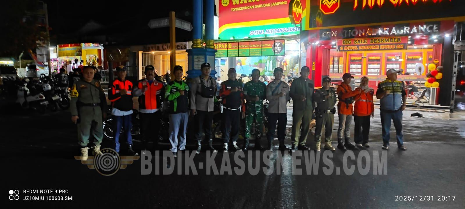 SUKABUMI-BIDIK-KASUSNEWS.COM – Pemerintah Kabupaten Sukabumi bersama TNI dan Polri memastikan situasi keamanan dan ketertiban masyarakat tetap terjaga selama malam pergantian Tahun Baru 2026. Wakil Bupati Sukabumi H. Andreas didampingi Kapolres Sukabumi AKBP Samian serta jajaran Forkopimda dan Forkopimcam meninjau langsung kesiapsiagaan pengamanan di sejumlah titik keramaian, Rabu malam (31/12/2025). Sejumlah lokasi strategis yang menjadi pusat aktivitas warga, seperti kawasan Alun-alun Gadobangkong dan Palabuhanratu, menjadi fokus pemantauan untuk mengantisipasi potensi gangguan kamtibmas serta kepadatan massa. Wabup Sukabumi menegaskan pentingnya sinergi lintas sektor dalam menciptakan rasa aman bagi masyarakat. Menurutnya, kolaborasi seluruh unsur pengamanan menjadi kunci agar perayaan tahun baru berlangsung tertib dan tanpa insiden. Ia juga mengajak masyarakat untuk merayakan pergantian tahun secara bijak, tidak berlebihan, serta tetap mengedepankan kepedulian sosial terhadap warga yang tengah terdampak bencana. Kapolres Sukabumi AKBP Samian menyampaikan bahwa pengamanan dilakukan secara terpadu dengan pengawasan ketat di titik-titik rawan, termasuk pengendalian aktivitas kembang api dan arus keramaian. “Kami mengerahkan personel untuk memastikan seluruh rangkaian perayaan malam tahun baru berjalan aman, terkendali, dan kondusif,” ujarnya. Sebelum pelaksanaan patroli lapangan, unsur Forkopimda Kabupaten Sukabumi mengikuti video conference bersama Kapolri Jenderal Polisi Listyo Sigit Prabowo dari Pos Pengamanan Citepus, Kecamatan Palabuhanratu, sebagai bagian dari koordinasi pengamanan nasional malam pergantian tahun. (Dicky)