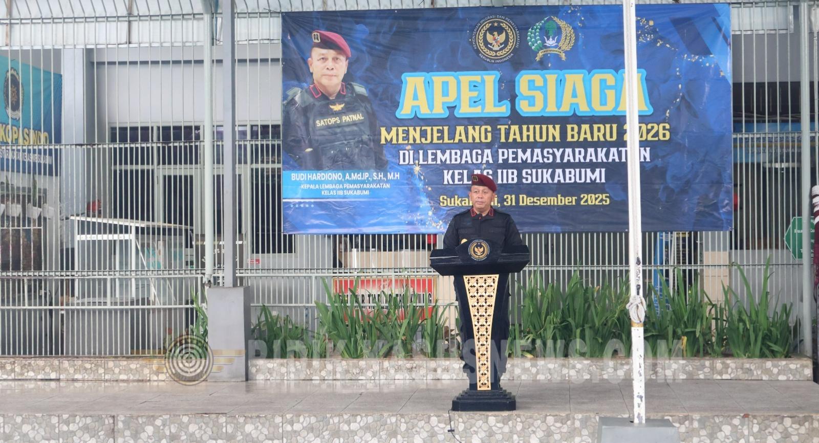 SUKABUMI-BIDIK-KASUSNEWS.COM – Menjelang pergantian Tahun Baru 2026, Lembaga Pemasyarakatan Kelas IIB Sukabumi mengerahkan pengamanan maksimal melalui Apel Siaga dan inspeksi mendadak kamar hunian bersama TNI dan Polri, Rabu (31/12/2025). Apel dipimpin Kepala Lapas Kelas IIB Sukabumi, Budi Hardiono, dan diikuti pejabat manajerial, seluruh pegawai, serta peserta magang. Dilakukan penyematan pita merah putih kepada perwakilan petugas menjadi simbol kesiapan dan komitmen menjaga stabilitas keamanan dan ketertiban di dalam Lapas. Dalam amanatnya, Kalapas menegaskan arahan Direktur Jenderal Pemasyarakatan Irjen Pol. Drs. Mashudi terkait larangan keras segala bentuk perayaan malam Tahun Baru di lingkungan Lapas. “Seluruh kegiatan diarahkan pada doa bersama. Pegawai yang menjalani cuti diminta tetap berada di wilayah Sukabumi demi menjaga kesiapsiagaan personel,” ujarnya. Selain penguatan pengamanan, Kalapas juga memaparkan capaian kinerja Lapas Sukabumi sepanjang Tahun Anggaran 2025. Di mana Lapas Sukabumi berhasil meraih tiga penghargaan tingkat Kantor Wilayah Direktorat Jenderal Pemasyarakatan Jawa Barat atas tata kelola anggaran yang akuntabel serta penguatan fungsi kehumasan. Usai apel, dilakukan sidak kamar hunian dipimpin langsung Kalapas bersama jajaran KPLP dan Kasi Administrasi Keamanan dan Ketertiban, serta melibatkan personel gabungan TNI Koramil 0607-07 Warudoyong dan Polri Polsek Warudoyong. Sidak difokuskan pada pemberantasan handphone ilegal, narkoba, pungutan liar, dan berbagai modus penipuan. Kalapas menegaskan, kegiatan ini merupakan implementasi Poin 6 dari 15 Program Aksi Kementerian Imigrasi dan Pemasyarakatan, yakni pemberantasan narkoba dan penipuan di dalam Lapas dan Rutan melalui penguatan pengawasan, penegakan disiplin, serta sinergi dengan aparat penegak hukum. Dalam sidak tersebut, petugas mengamankan sejumlah barang terlarang untuk ditindaklanjuti sesuai ketentuan. Langkah ini menjadi penegasan komitmen Lapas Kelas IIB Sukabumi dalam menciptakan lingkungan pemasyarakatan yang aman, tertib, dan berintegritas menyongsong Tahun Baru 2026. (Usep)