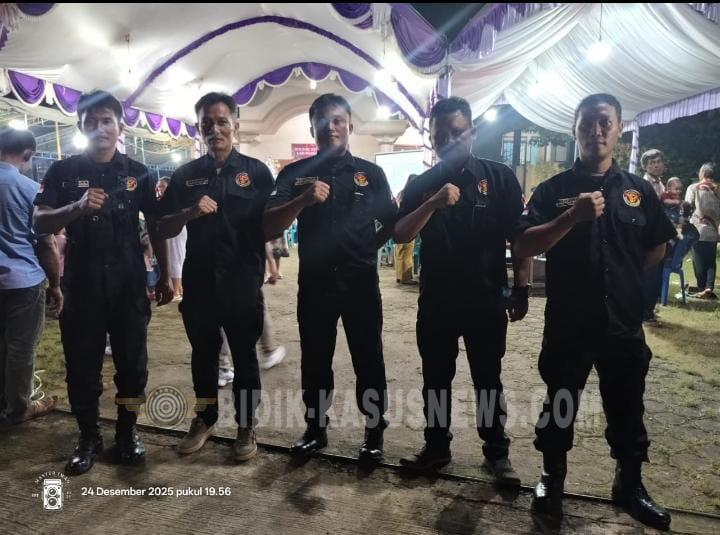JATENG:Bidik-kasusnews.com Jepara, 25 Desember 2025 – Dalam rangka mendukung terciptanya situasi yang aman dan kondusif pada perayaan Hari Raya Natal 2025, SQUAD NUSANTARA Ranting Bangsri melaksanakan kegiatan Pengamanan (PAM) Natal pada Kamis malam (25/12) mulai pukul 18.00 WIB. Kegiatan pengamanan ini melibatkan 4 personel SQUAD NUSANTARA Ranting Bangsri yang ditugaskan untuk mengamankan dua gereja, yakni GKSI Bondo Kidul dan GITJ Persil Margokerto. Pengamanan dipimpin langsung oleh Agus Cahyono selaku Ketua Satgas SQUAD NUSANTARA Ranting Bangsri. Pelaksanaan PAM Natal ini bertujuan untuk memberikan rasa aman dan nyaman kepada umat Kristiani dalam menjalankan ibadah Natal, sekaligus menjaga ketertiban dan keamanan lingkungan sekitar gereja. Personel SQUAD NUSANTARA hadir di lokasi sejak sebelum ibadah dimulai hingga kegiatan selesai. Agus Cahyono menyampaikan bahwa keterlibatan SQUAD NUSANTARA dalam pengamanan perayaan Natal merupakan bentuk komitmen organisasi dalam menjaga toleransi antarumat beragama serta mendukung terciptanya keharmonisan di tengah masyarakat. Selama kegiatan berlangsung, situasi di kedua lokasi pengamanan terpantau aman, tertib, dan kondusif. Ibadah Natal dapat berjalan dengan lancar tanpa adanya gangguan keamanan. Melalui kegiatan PAM Natal ini, SQUAD NUSANTARA Ranting Bangsri berharap dapat terus berkontribusi dalam menciptakan suasana yang damai, aman, dan penuh kebersamaan di wilayah Kecamatan Bangsri dan sekitarnya. (Wely-jateng)