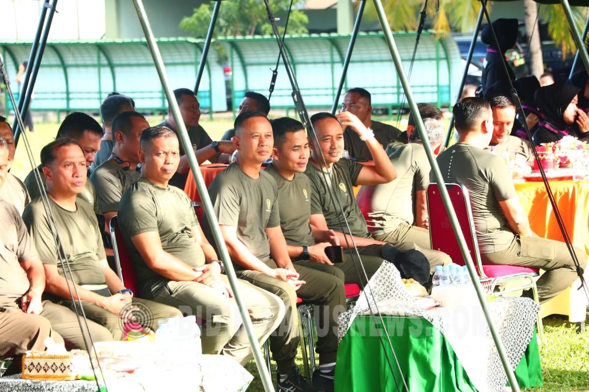 Bandar Lampung, Bidik-kasusnew.com — Komandan Kodim (Dandim) 0410/Kota Bandar Lampung (KBL), Kolonel Arm Rony Hermawan, S.H., M.M., menghadiri puncak peringatan Hari Ulang Tahun (HUT) ke-64 Korps Wanita Angkatan Darat (Kowad) yang digelar oleh Persit Kartika Chandra Kirana Cabang XXI di wilayah Kodim 0410/KBL, Rabu (17/12/2025) sore. Kegiatan yang berlangsung di Lapangan Satlog, Kelurahan Way Halim Permai, Kecamatan Way Halim, tersebut berlangsung semarak dan penuh keakraban. Sejumlah rangkaian acara mewarnai peringatan HUT Kowad tahun ini, mulai dari pertandingan olahraga bola voli antaranggota Persit, sambutan, pembacaan doa, pemotongan tumpeng, hingga penyerahan hadiah kepada para pemenang lomba. Acara ini turut dihadiri Panglima Kodam XXI/Radin Inten, Mayjen TNI Kristomei Sianturi, S.Sos., M.Si., beserta Ibu, yang memberikan sambutan sekaligus secara resmi menutup rangkaian pertandingan olahraga dalam rangka HUT ke-64 Kowad. Kehadiran para pejabat TNI AD ini mencerminkan kuatnya dukungan pimpinan terhadap peran strategis Kowad dan Persit dalam mendukung tugas pokok TNI Angkatan Darat. Dalam sambutannya, Pangdam XXI/Radin Inten menyampaikan apresiasi dan penghargaan kepada seluruh anggota Kowad dan Persit Kartika Chandra Kirana atas dedikasi, loyalitas, dan kontribusinya dalam mendukung keberhasilan tugas-tugas TNI AD, sekaligus dalam membina ketahanan keluarga prajurit. Ia juga menegaskan bahwa perempuan TNI AD memiliki peran penting sebagai sosok yang tangguh, inspiratif, dan berkarakter. Dandim 0410/KBL Kolonel Arm Rony Hermawan beserta Ibu tampak berbaur bersama peserta kegiatan, menunjukkan dukungan penuh jajaran Kodim 0410/KBL terhadap setiap kegiatan yang bertujuan mempererat kebersamaan, meningkatkan sportivitas, serta memperkuat pembinaan teritorial dan hubungan harmonis di lingkungan keluarga besar TNI AD. Selama kegiatan berlangsung, pengamanan dan pemantauan dilakukan oleh Babinsa setempat. Hingga acara berakhir sekitar pukul 17.55 WIB, seluruh rangkaian kegiatan berjalan aman, tertib, dan lancar dalam suasana penuh kekeluargaan. (Agus)