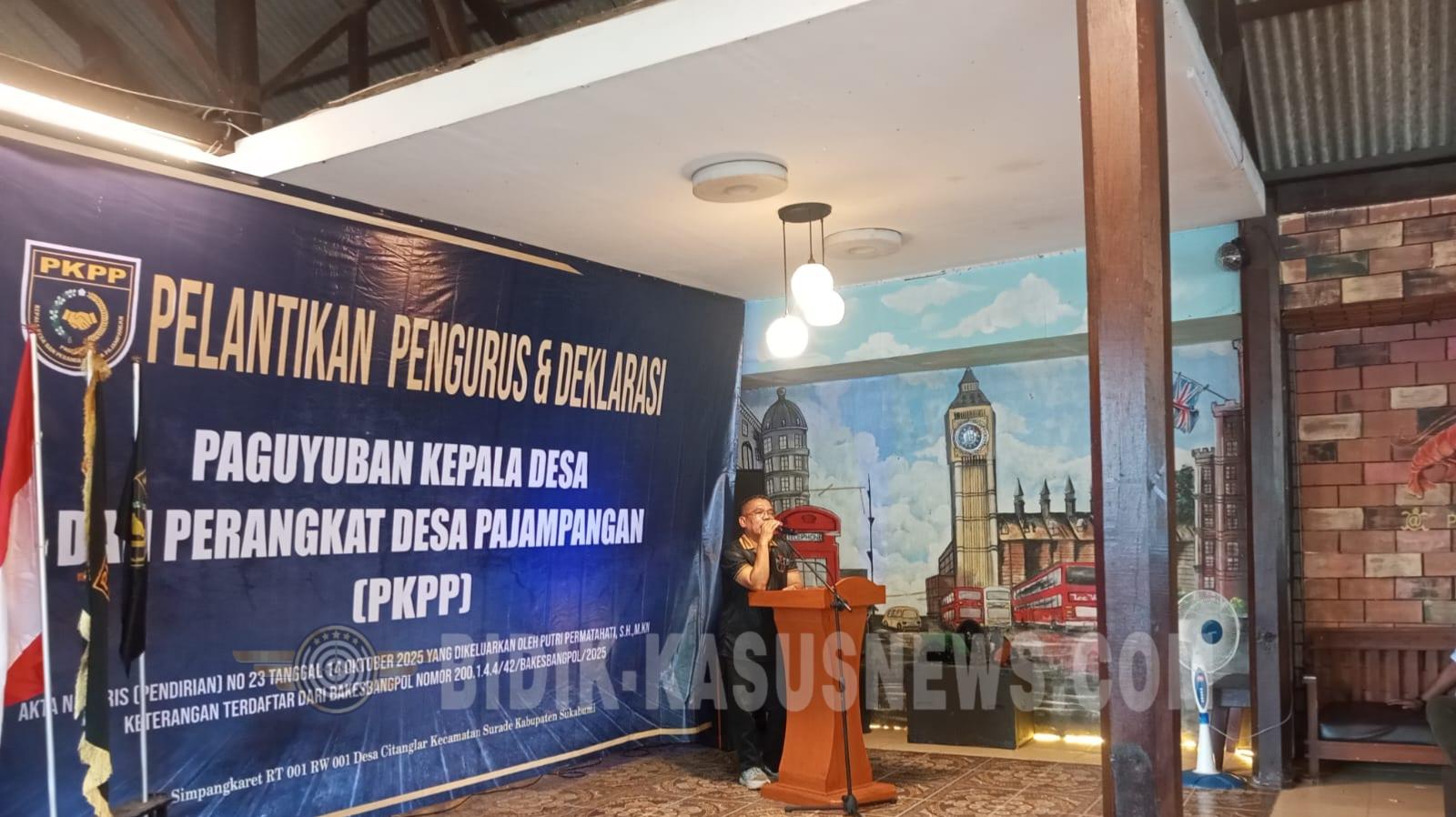 SUKABUMI-BIDIK-KASUSNEWS.COM – Bupati Sukabumi H. Asep Japar melantik dan deklarasi Pengurus Paguyuban Kepala Desa dan Perangkat Desa Pajampangan (PKPP) masa bakti 2025–2027. Kegiatan berlangsung di Pondok Alif, Desa Ujunggenteng, Kecamatan Ciracap, Kabupaten Sukabumi, Jumat (19/12/2025). Acara tersebut dihadiri Ketua DPRD Kabupaten Sukabumi Budi Azhar Mutawali. Hadir mendampingi sejumlah anggota DPRD dari berbagai fraksi, di antaranya Taufik Guntur Abdurahman Rochmi dari Fraksi Gerindra, H. Ujang Abdurahman Rochmi dari Fraksi Golkar, Aries dari Fraksi Demokrat, serta H. Andri Hidayana dari Fraksi PPP. Selain itu hadir Kepala Dinas PU Kabupaten Sukabumi Uus Firdaus, Kepala DPMD Kabupaten Sukabumi, para camat se-Wilayah VI, Ketua Umum JTM H. Hendra Permana, Ketua Umum YFSBBP H. Isep Dadang Sukmana, Tak ketinggalan ada di lokasi pelantikan Ketua Parade Kabupaten Sukabumi, para kepala desa dan perangkat desa se-Wilayah VI, unsur OKP, ormas, tokoh agama, alim ulama, serta tamu undangan lainnya. Dalam sambutannya, Bupati Asep Japar mengucapkan selamat kepada ketua dan seluruh jajaran pengurus PKPP Pajampangan yang baru dilantik. Ia menegaskan bahwa pelantikan ini bukan sekadar seremoni, melainkan peneguhan komitmen dan amanat untuk memajukan desa-desa di wilayah Pajampangan. Menurutnya, PKPP diharapkan menjadi wadah strategis dalam memperkuat koordinasi, harmonisasi, dan sinergi antara pemerintah desa, pemerintah kecamatan, dan pemerintah kabupaten. Kepala desa dan perangkat desa disebut sebagai ujung tombak pelayanan publik yang bersentuhan langsung dengan masyarakat. Bupati Asep Japar juga berpesan agar seluruh pengurus PKPP menjaga kekompakan, menghindari ego sektoral, serta menjadi jembatan komunikasi yang efektif antara desa dan pemerintah daerah. Dengan kebersamaan, ia optimistis wilayah Pajampangan dapat terus maju dan berkontribusi dalam mewujudkan Kabupaten Sukabumi yang mubarakah. Sementara itu, Ketua PKPP Pajampangan Surahman menegaskan bahwa PKPP dibentuk tanpa kepentingan sempit dan tidak membatasi afiliasi organisasi para kepala desa. Ia menyampaikan bahwa sebanyak 71 kepala desa di wilayah Pajampangan telah sepakat untuk mengutamakan kepentingan bersama demi kemajuan daerah. Surahman menambahkan, PKPP ingin diakui sebagai bagian dari elemen masyarakat Pajampangan yang solid dan bertanggung jawab. Pihaknya menyatakan siap menjaga dan membentengi wilayah Pajampangan dari berbagai pihak yang tidak bertanggung jawab, demi terciptanya stabilitas dan pembangunan desa yang berkelanjutan. (Dicky)