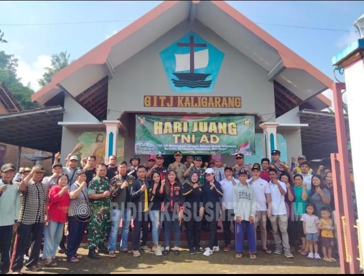 JATENG:Bidik-kasusnews.com Jepara – Dalam rangka memperingati Hari Juang TNI, Squad Nusantara Ranting Keling bersama Kodim 0719 Jepara melaksanakan aksi bersih-bersih tempat ibadah di Gereja Dukuh Tarokan RT 02 RW 01, Desa Kaligarang, Kecamatan Keling, pada Rabu 10 Desember 2025. Kegiatan ini dipimpin langsung oleh Ketua Squad Nusantara Ranting Keling, Teguh Setiawan, yang sekaligus menjadi sumber utama dalam pelaksanaan kegiatan tersebut. Menurut Ketua Squad Nusantara, kegiatan ini merupakan bentuk nyata kepedulian terhadap lingkungan dan sarana ibadah. “Gotong royong ini bukan hanya untuk memperingati Hari Juang TNI, tapi juga wujud kepedulian kami terhadap tempat ibadah dan masyarakat sekitar,” ujar Teguh Setiawan. Kegiatan bersih-bersih turut diikuti jajaran Kodim 0719 Jepara yang dipimpin langsung oleh Dandim Letkol Inf Choirul Cahyadi, Koramil 08 Keling yang dipimpin Danramil Kapten Inf Yunius Wibisono, serta Polsek Keling melalui perwakilan Aiptu Achmadi dan dua anggota lainnya. Hadir pula Camat Keling Lulut, Kepala Satpol PP Kecamatan Sukamto, dan Petinggi Desa Kaligarang Kusmanto beserta perangkat. Selain unsur TNI dan pemerintah, masyarakat juga berpartisipasi, mulai dari Linmas desa, Karang Taruna, tokoh agama, tokoh masyarakat, hingga Ormas Pemuda Pancasila (PP). Kebersamaan terlihat kuat sepanjang kegiatan yang dimulai pukul 07.30 WIB. Ketua Squad Nusantara, Teguh Setiawan, menambahkan bahwa kolaborasi seperti ini sangat penting untuk menjaga kerukunan. “Kami bangga karena banyak pihak terlibat. Ini menunjukkan bahwa kebersamaan masih sangat kuat di tengah masyarakat,” ungkapnya. Usai kerja bakti, acara dilanjutkan dengan ramah tamah antara Dandim, Camat, Petinggi, dan pengurus gereja. Dalam kesempatan tersebut, pengurus gereja menyampaikan kebutuhan dana untuk persiapan Natal dan Tahun Baru. Mendengar hal itu, Dandim Letkol Inf Choirul Cahyadi langsung memberikan bantuan uang tunai sebagai dukungan bagi gereja. Acara kemudian ditutup dengan doa bersama. Ketua Squad Nusantara berharap kegiatan serupa dapat terus dilakukan secara berkelanjutan. “Semoga sinergi antara TNI, pemerintah, ormas, dan masyarakat ini terus terjaga. Kami siap mendukung kegiatan sosial kapan pun dibutuhkan,” tutur Teguh. (Wely-jateng)