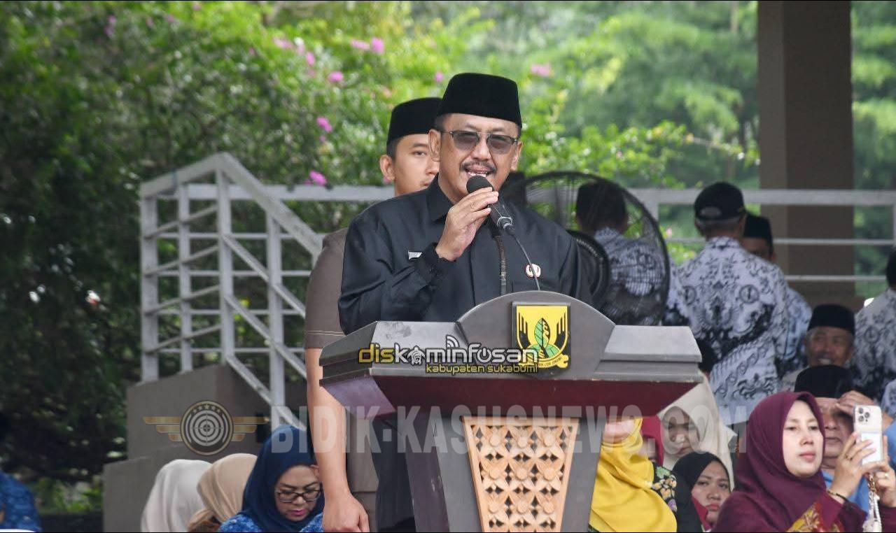 SUKABUMI-BIDIK-KASUSNEWS.COM — Sebanyak 8.164 tenaga honorer di Kabupaten Sukabumi resmi beralih status menjadi Pegawai Pemerintah dengan Perjanjian Kerja (PPPK) Paruh Waktu. Pelantikan dipimpin langsung oleh Bupati Sukabumi H. Asep Japar di Lapang Cangehgar, Palabuhanratu, Kamis, 4 Desember 2025. Pengambilan sumpah berlangsung dalam rangkaian upacara Peringatan HUT ke-54 KORPRI, HUT ke-80 PGRI, serta Hari Guru Nasional tingkat Kabupaten Sukabumi 2025. Serangkaian peringatan ini disebut bupati sebagai momentum reflektif yang mempertegas peran aparatur negara, tenaga pendidik, dan seluruh unsur pelayanan publik dalam pembangunan daerah. Bupati menegaskan bahwa pelantikan ribuan PPPK Paruh Waktu bukan hanya seremoni administratif, melainkan awal peneguhan komitmen baru dalam bekerja dan melayani masyarakat. ”Ini menjadi momentum strategis untuk merefleksikan posisi kita sebagai abdi negara. Jadikan hari ini titik semangat baru menjaga integritas dan meningkatkan kinerja dalam pelayanan publik,” ujar Asep Japar. Ia mengajak KORPRI, PGRI, dan PPPK Paruh Waktu untuk memperkuat sinergi menuju penyelenggaraan pemerintahan yang lebih efektif dan pelayanan publik yang semakin berkualitas. Kolaborasi seluruh aparatur, tegasnya, menjadi kunci percepatan pembangunan di Kabupaten Sukabumi. “Mari terus bersatu padu, menguatkan soliditas dan merangkul energi baru demi mewujudkan Kabupaten Sukabumi yang Mubarakah.” Dalam kesempatan yang sama, bupati menyampaikan apresiasi kepada para guru atas dedikasi dalam mencerdaskan bangsa. Guru, menurutnya, merupakan fondasi pembentukan sumber daya manusia unggul dan berkarakter. Ia mengingatkan pentingnya inovasi, adaptasi teknologi, dan profesionalisme sebagai jawaban atas tantangan pendidikan masa kini. Di tengah acara, tampak rona haru juga hadir. Usep, 55 tahun, Penjaga Sekolah SMPN 2 Sagaranten, menjadi satu di antara ribuan PPPK yang dilantik. Ia mengaku bahagia setelah 15 tahun mengabdi sebagai tenaga honorer. “Alhamdulillah, akhirnya bisa dilantik. Terima kasih kepada semua pihak, terutama pak bupati dan pak gubernur,” ucapnya dengan mata berkaca-kaca. Rangkaian kegiatan ditutup dengan pemberian kadeudeuh bagi purna bhakti, penyerahan penghargaan, serta apresiasi pemenang berbagai perlombaan, menjadikan pelantikan ini tidak hanya bersejarah, tetapi juga penuh nuansa syukur dan selebrasi. (Dicky)
