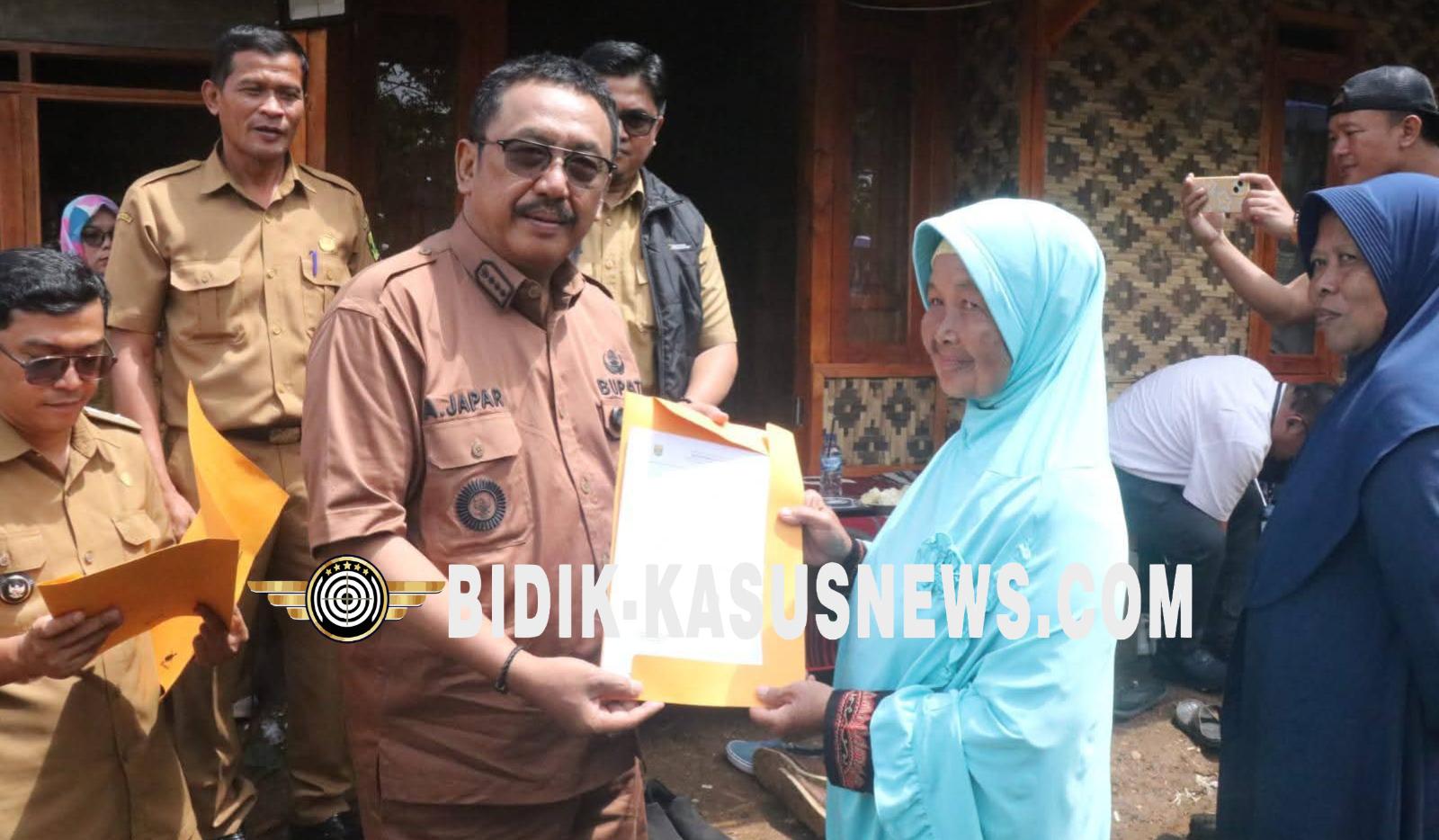SUKABUMI-BIDIK-KASUSNEWS.COM – Bupati Sukabumi H. Asep Japar meninjau langsung hasil pembangunan hunian tetap (Huntap) bagi warga penyintas bencana pergerakan tanah di Kecamatan Nyalindung, Senin (3/11/2025). Kegiatan monitoring dilakukan di Kampung Cireundeu, Desa Mekarsari, tempat puluhan unit rumah bantuan dari Pemerintah Provinsi Jawa Barat, Pemerintah Kabupaten Sukabumi, dan Pemerintah Desa Mekarsari dibangun untuk warga terdampak. Dalam kesempatan itu, Bupati Asep Japar mengingatkan agar seluruh penerima manfaat menjaga dan merawat hunian mereka dengan sebaik mungkin agar tetap layak huni dan memberi manfaat jangka panjang bagi keluarga. “Insya Allah kami akan terus berupaya agar seluruh warga terdampak bencana terlayani dan terfasilitasi dengan baik. Dengan kolaborasi semua pihak, mudah-mudahan lingkungannya terpelihara, kebersihan dan kesehatannya tetap terjaga,” ujarnya. Bupati menegaskan, Huntap ini tidak hanya menjadi tempat tinggal, tetapi juga simbol kebangkitan dan harapan baru bagi masyarakat setelah bencana. Ia berharap lingkungan tersebut berkembang menjadi kawasan yang aman, nyaman, dan indah untuk ditinggali. Sementara itu, Kepala Desa Mekarsari, H. Ilham Maulana, menjelaskan bahwa total rumah Huntap yang telah dibangun berasal dari tiga sumber bantuan, yakni 20 unit dari Gubernur Jawa Barat, 5 unit dari Bupati Sukabumi, dan 3 unit dari Pemerintah Desa Mekarsari. Sebagai bagian dari kegiatan monitoring, Bupati Sukabumi juga menyerahkan Surat Keputusan Nilai Jual Objek Pajak (SK NJOP) secara simbolis kepada tiga warga penerima Huntap sebagai tanda resmi kepemilikan dan pengakuan atas hunian mereka. (Dicky)