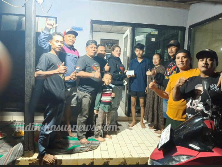 JATENG:Bidik-kasusnews.com Jepara – Ranting Squad Nusantara Bangsri menunjukkan kepeduliannya dengan menjenguk anak dari salah satu anggota, Ses (Sambo), yang mengalami musibah kecelakaan di wilayah Swawal. Kunjungan tersebut dilakukan pada Rabu malam (1/10/2025) di kediaman keluarga korban di Desa Krasak RT 01/RW 15, Kecamatan Bangsri. Rombongan dipimpin langsung oleh Ketua Ranting Squad Nusantara Bangsri, Gayor, bersama sejumlah anggota. Selain memberikan doa dan semangat untuk kesembuhan, mereka juga menyerahkan santunan kepada keluarga sebagai bentuk dukungan nyata. Ketua Ranting Squad Nusantara Bangsri, Gayor, menyampaikan bahwa kegiatan ini merupakan bentuk solidaritas dan kepedulian antaranggota. “Kami hadir untuk memberikan semangat dan meringankan sedikit beban keluarga. Persaudaraan di Squad Nusantara tidak hanya sebatas organisasi, tetapi juga keluarga besar yang saling peduli,” ujarnya. Melalui kegiatan sosial ini, Ranting Squad Nusantara Bangsri berharap kehadirannya dapat memberikan dukungan moral bagi keluarga serta mempererat kebersamaan antaranggota.(Wely-jateng)