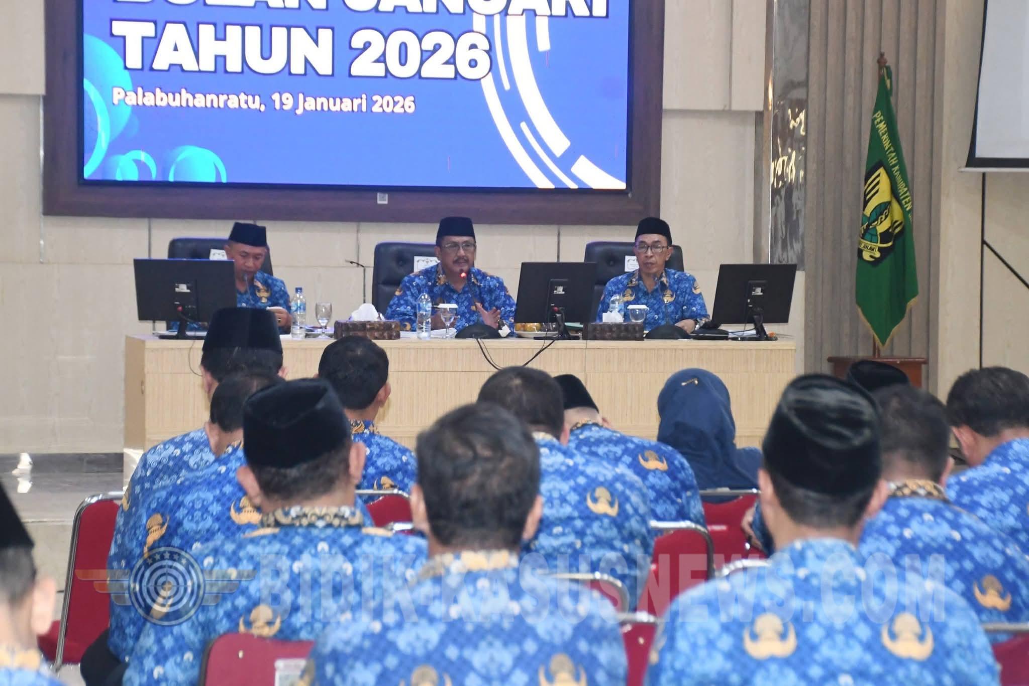 SUKABUMI-BIDIK-KASUSNEWS.COM – Bupati Sukabumi, H. Asep Japar, menyebut bahwa camat merupakan garda terdepan dalam Penanggulangan bencana. Hal itu disampaikan Bupati saat memimpin Rapat Dinas Bulanan perdana tahun 2026 di Aula Sekretariat Daerah, Palabuhanratu, Senin, 19 Januari 2026. ”Saya minta agar para camat segera turun ke lokasi bencana untuk memantau langsung kondisi di lapangan, sebelum instansi terkait tiba di tempat,” kata bupati. Selain itu dia juga mendorong penguatan manajemen bencana oleh semua pemangku kepentingan di seluruh wilayah. Hal tersebut perlu dilakukan mengingat tanggungjawab tidak bisa hanya dibebankan kepada satu institusi saja. ”Manajemen bencana tidak bisa hanya dibebankan kepada satu instansi. Untuk itu ia menginstruksikan para camat untuk menjadi garda terdepan saat terjadi insiden di wilayahnya,” ujar Asep. Rapat yang dipandu oleh Sekretaris Daerah H. Ade Suryaman ini dihadiri oleh Wakil Bupati H. Andreas, para asisten daerah, staf ahli, kepala perangkat daerah, serta seluruh camat se-Kabupaten Sukabumi. Di samping itu dia juga menekankan respon cepat Penanggulangan bencana dan perbaikan sistem pelayanan publik. ”Soliditas antarperangkat daerah penting dilakukan khususnya dalam merespons potensi bencana alam dan menjaga kualitas pelayanan publik di tengah tantangan anggaran,” kata Asjap panggilan akrab Asep Japar. Dia menambahkan, penanganan bencana adalah tanggung jawab kita bersama. Dia meminta para camat untuk langsung turun ke lapangan saat bencana terjadi, bahkan sebelum instansi teknis tiba. ”Sampaikan informasi akurat kepada masyarakat agar situasi tetap kondusif,” tegasnya. Asjap menjelaskan, kerja sama konkret dalam mitigasi bencana juga diperkuat melalui penandatanganan kesepakatan bersama antara Pemkab Sukabumi dengan Perum Perhutani KPH Sukabumi yang dilakukan di sela-sela rapat. Kondisi fiskal daerah ujarnya yang mengalami penurunan, Bupati meminta seluruh jajaran birokrasi tidak mengendurkan semangat kerja. ”Perlu digarisbawahi bahwa keterbatasan anggaran harus disiasati dengan inovasi dan efisiensi, tanpa mengorbankan tiga pilar prioritas pembangunan tahun 2026, yakni infrastruktur, kesehatan dan pendidikan,” terangnya. Bahkan dia mendorong agar di posisi sulit ini seluruh jajaran Pemkab Sukabumi harus bekerja lebih semangat lagi. ”Meskipun anggaran menurun, pelayanan publik di sektor vital harus terus direalisasikan secara maksimal,” tambahnya. Sementara itu Wakil Bupati Sukabumi H. Andreas menyoroti pentingnya keterbukaan informasi dan koordinasi lintas sektoral. Menurutnya, respons cepat pemerintah harus diimbangi dengan komunikasi yang transparan mulai dari desa hingga kabupaten. ”Saya meminta informasi pemerintah tersampaikan secara transparan dari tingkat bawah hingga atas. Persoalan krusial harus diantisipasi sejak dini agar tidak menimbulkan polemik di masyarakat,” ujar Andreas. Rapat dinas ini juga menjadi momentum pemberian penghargaan bagi perangkat daerah berprestasi. Penghargaan Kepatuhan Kinerja Tahun 2025 tingkat perangkat daerah diraih oleh BPKAD, DPPKB, dan Inspektorat. Sedangkan untuk tingkat kecamatan, penghargaan diberikan kepada Kecamatan Palabuhanratu, Parakansalak, dan Sagaranten. (Dicky)