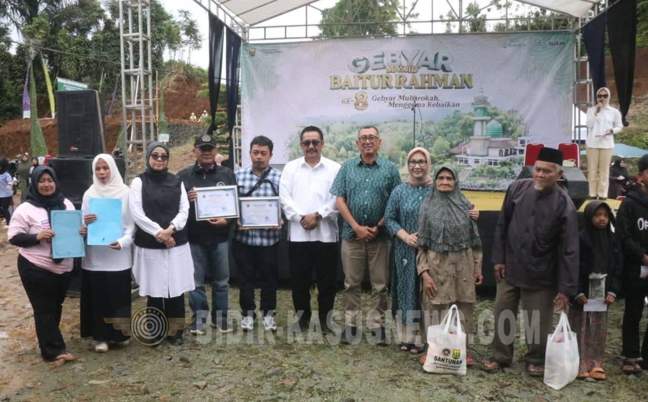SUKABUMI-BIDIK-KASUSNEWS.COM – Bupati Sukabumi, Asep Japar menegaskan bahwa kemakmuran masjid memiliki peran strategis dalam membangun masyarakat yang religius, rukun, dan berakhlak mulia. Hal itu disampaikan saat menghadiri Milad ke-8 Masjid Baiturrahman yang dirangkaikan dengan peletakan batu pertama pembangunan Puskesmas Pembantu (Pustu) Baiturrahman, di Kampung Cibogo, Desa Ciengang, Kecamatan Gegerbitung, Minggu (18/1/2026). Dia menyatakan, masjid tidak hanya berfungsi sebagai sarana untuk menjalankan ritual ibadah, tetapi juga pusat pembinaan moral, sosial, dan kemasyarakatan. ”Masjid harus terus menjadi ruang dakwah, pendidikan keagamaan, serta penguatan nilai kebersamaan dan persaudaraan di tengah masyarakat,” kata bupati. Lebih dari itu dia juga mengapresiasi dimulainya pembangunan Pustu Baiturrahman sebagai upaya meningkatkan akses dan kualitas pelayanan kesehatan warga. ”Saya berharap fasilitas tersebut dapat mendorong terwujudnya Kabupaten Sukabumi yang sehat dan sejahtera,” ujarnya. Semangat gotong royong panitia, pengurus masjid, dan masyarakat dalam pembangunan Pustu kata dia, menjadi contoh sinergi positif antara masyarakat dan pemerintah. Sementara itu, Ketua Panitia Milad Masjid Baiturrahman, Rudi Suharya, menyampaikan rangkaian kegiatan milad meliputi santunan anak yatim dan lansia, pengobatan gratis bagi sekitar 500 warga, pemberdayaan UMKM, pelayanan perizinan UMKM gratis, hingga peletakan batu pertama Pustu Baiturrahman. Rudi menambahkan, setelah rampung dibangun, Pustu Baiturrahman akan diserahkan kepada pemerintah daerah untuk mendukung program satu desa satu dokter. Dalam kegiatan tersebut juga dilakukan penyerahan piagam penghargaan kepada dua Satuan Pelayanan Pemenuhan Gizi (SPPG) di Kecamatan Gegerbitung, yakni Dapur MBG Mubarokah dan SPPG Karang Jaya, atas kontribusi kemitraan dengan UMKM lokal. Selain itu, turut dilakukan penyerahan santunan secara simbolis kepada 20 anak yatim dan lansia, serta penyerahan Nomor Induk Berusaha dan sertifikat halal kepada pelaku UMKM. (Dicky)