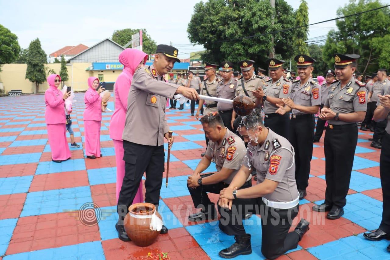 Kuningan Bidik-kasusnews.com,.Sebanyak 97 personel Polres Kuningan resmi menerima kenaikan pangkat setingkat lebih tinggi terhitung mulai tanggal (TMT) 1 Januari 2026. Kenaikan pangkat tersebut diumumkan dalam upacara yang digelar di lingkungan Polres Kuningan. Kapolres Kuningan AKBP Muhamad Ali Akbar menyampaikan ucapan selamat kepada seluruh personel yang mendapatkan kenaikan pangkat. Ia menegaskan bahwa kenaikan pangkat merupakan bentuk penghargaan dari negara dan institusi Polri atas prestasi, dedikasi, loyalitas, serta disiplin yang telah ditunjukkan selama berdinas. “Sebagai pimpinan Polres Kuningan dan keluarga besar Polri, saya mengucapkan selamat dan turut berbahagia kepada personel yang hari ini menerima kenaikan pangkat,” ujar Kapolres. Adapun rincian personel yang mendapatkan kenaikan pangkat tersebut, yakni: IPTU ke AKP sebanyak 7 orang IPDA ke IPTU sebanyak 4 orang AIPDA ke AIPTU sebanyak 15 orang BRIPKA ke AIPDA sebanyak 39 orang BRIGPOL ke BRIPKA sebanyak 1 orang BRIPTU ke BRIGPOL sebanyak 21 orang BRIPDA ke BRIPTU sebanyak 10 orang Kapolres menambahkan, dengan kenaikan pangkat tersebut maka tanggung jawab yang diemban para personel juga semakin besar. Ia berharap momentum ini dapat menjadi motivasi untuk meningkatkan profesionalisme serta kualitas pelayanan kepada masyarakat. Upacara kenaikan pangkat berlangsung dengan khidmat dan penuh kebanggaan, diikuti oleh pejabat utama Polres Kuningan serta seluruh jajaran personel. Polres Kuningan berharap kenaikan pangkat ini dapat semakin memperkuat soliditas internal dan kinerja kepolisian dalam menjaga keamanan dan ketertiban masyarakat. Usai upacara resmi, kegiatan dilanjutkan dengan tradisi kenaikan pangkat yang berlangsung meriah dan penuh kebersamaan. Para personel yang naik pangkat mengikuti prosesi penyiraman air menggunakan mobil pemadam kebakaran (Damkar) sebagai simbol penyucian diri, penyemangat baru, serta harapan agar selalu diberikan keselamatan dalam menjalankan tugas. Tradisi tersebut disambut antusias oleh para personel dan keluarga yang turut hadir. Suasana keakraban dan kebanggaan terlihat jelas saat satu per satu personel menjalani prosesi penyiraman air. Dengan adanya tradisi kenaikan pangkat ini, diharapkan dapat semakin memperkuat soliditas internal serta menumbuhkan semangat pengabdian bagi seluruh personel Polres Kuningan dalam menjaga keamanan dan ketertiban masyarakat. (Asep.R)