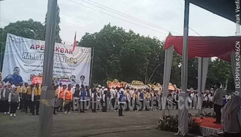 CIREBON-BIDIK-KASUSNEWS.COM – Pemerintah Kabupaten Cirebon menggelar Apel Hari Bakti PU ke-80 di halaman DPUTR sebagai bentuk penghormatan terhadap dedikasi insan Pekerjaan Umum sekaligus memperkuat komitmen pembangunan infrastruktur yang merata. Apel dipimpin Bupati Cirebon, Drs. H. Imron Rosyadi, M.Ag, didampingi Plt. Kepala Dinas PUPR, R. Tomy Hendrawan, S.T. serta jajaran struktural dan perwakilan Dinas Perhubungan. Kehadiran lintas sektor ini mencerminkan sinergi pemerintah daerah dalam meningkatkan mobilitas dan kualitas layanan publik. Dalam amanatnya, Bupati menegaskan bahwa tema nasional “Infrastruktur Berkeadilan, Rakyat Sejahtera, Indonesia Maju” menjadi arah pembangunan di Kabupaten Cirebon. Ia menekankan bahwa pembangunan tidak boleh hanya terfokus di kawasan perkotaan, tetapi harus menjangkau seluruh desa agar manfaatnya dirasakan secara merata. Bupati juga mengapresiasi dedikasi insan PU yang selama ini menjadi garda terdepan pembangunan daerah. Tantangan tahun-tahun mendatang, kata dia, mencakup percepatan peningkatan kualitas jalan, drainase, irigasi, serta infrastruktur dasar lainnya. Momentum Hari Bakti PU ke-80 ini sekaligus menjadi evaluasi program 2024 dan penegasan target pembangunan tahun 2025, seiring telah disahkannya anggaran DPUTR dalam APBD 2025. Di akhir amanat, Bupati mengajak seluruh insan PU menjaga integritas, profesionalisme, dan semangat pengabdian demi mewujudkan infrastruktur yang berkeadilan dan mendukung kesejahteraan masyarakat. (Amin)