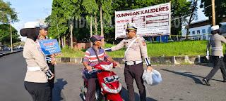 Kuningan Bidik-kasusnews.com,.Dalam rangkaian Operasi Zebra 2025, Satlantas Polres Kuningan melaksanakan kegiatan edukasi keselamatan berlalu lintas dengan membagikan helm berstandar SNI, kopi, layanan pengobatan gratis, serta stiker imbauan kepada para pengendara di Terminal Kertawangunan, Kabupaten Kuningan, Kamis (27/11/2025). Langkah ini menjadi bagian dari pendekatan humanis kepolisian untuk meningkatkan kesadaran masyarakat mengenai pentingnya keselamatan berkendara, khususnya penggunaan helm standar nasional bagi pengendara roda dua. Kasat Lantas Polres Kuningan AKP Pandu Renata melalui KBO Satlantas IPTU Deni Supriyana menjelaskan bahwa kegiatan tersebut merupakan strategi preemtif dan preventif dalam menekan angka kecelakaan lalu lintas. “Dalam Operasi Zebra ini, kami tidak hanya fokus pada penegakan hukum, tetapi juga mengedepankan edukasi. Pembagian helm, kopi, layanan pengobatan gratis, dan stiker keselamatan adalah bentuk perhatian kami kepada masyarakat agar selalu mengutamakan keselamatan di jalan,” ujar IPTU Deni. Menurutnya, temuan di lapangan menunjukkan masih banyak pengendara yang belum mematuhi kewajiban memakai helm SNI, baik pengendara maupun penumpang. Karena itu, kegiatan humanis semacam ini akan terus diperkuat selama operasi berlangsung. Advertisement Selain membagikan helm, petugas juga menempelkan stiker bertema keselamatan pada kendaraan dan memberikan imbauan mengenai tertib berlalu lintas, mulai dari penggunaan helm, kelengkapan kendaraan, hingga kepatuhan terhadap rambu-rambu. IPTU Deni berharap masyarakat semakin memahami bahwa keselamatan berkendara adalah kebutuhan utama. “Kami ingin memastikan bahwa kedisiplinan berlalu lintas mampu menekan potensi kecelakaan dan menciptakan Kuningan yang lebih aman,” tegasnya. Operasi Zebra 2025 sendiri berlangsung hingga 30 November 2025, dengan fokus pada pelanggaran yang berpotensi menimbulkan kecelakaan seperti tidak memakai helm, melawan arus, menggunakan ponsel saat berkendara, serta pelanggaran lain yang membahayakan. Hingga hari ini, tercatat sekitar 1.200 pengendara telah diberikan surat teguran. Satlantas Polres Kuningan mengimbau masyarakat agar selalu mematuhi aturan dan menempatkan keselamatan sebagai prioritas utama saat berada di jalan raya. (Asep.R)