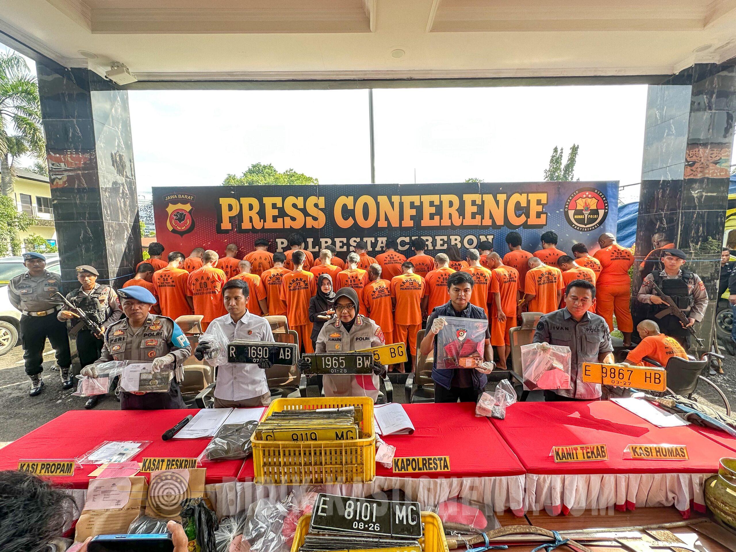 Cirebon Bidik-kasusnews.com,.Polresta Cirebon berhasil mengungkap 24 kasus tindak pidana di wilayah Kabupaten Cirebon. Dalam pengungkapan puluhan kasus tersebut, petugas juga berhasil mengamankan 31 tersangka. Kapolresta Cirebon, Kombes Pol Sumarni, S.I.K, S.H, M.H, mengatakan, seluruh kasus tersebut terdiri dari 2 kasus pencurian sepeda motor (curanmor), 3 kasus pencurian dengan pemberatan (curat), 3 kasus kepemilikan senjata tajam (sajam), 8 kasus penggelapan, 4 kasus pencabulan, 1 kasus pembunuhan, 1 kasus percobaan pembunuhan, 1 kasus penyalahgunaan migas, dan 1 kasus penganiayaan berat. “Dari pengungkapan tersebut, kami mengamankan 31 tersangka yang terdiri dari 2 tersangka kasus curanmor, 3 tersangka kasus curat, 4 tersangka kasus kepemilikan sajam, 9 tersangka kasus penggelapan, 7 tersangka kasus pencabulan, dan masing-masing 1 tersangka kasus pembunuhan, percobaan pembunuhan, penyalahgunaan migas, hingga penganiayaan berat,” ujarnya, Jumat (28/10/2025). Ia mengatakan, berbagai barang bukti juga turut diamankan dalam pengungkapan seluruh kasus tersebut. Hingga kini, para tersangka berikut barang bukti yang telah diamankan masih menjalani pemeriksaan lebih lanjut di Mapolresta Cirebon. “Kami masih melakukan pemeriksaan lebih lanjut terhadap 31 tersangka yang diamankan. Adapun Pasal yang diterapkan dalam pengungkapan 23 Kasus tersebut antara lain Pasal 362 KUHP, Pasal 363 KUHP, Pasal 2 ayat 1 UU Darurat, dan lainnya,” katanya. Adapun kasus yang menonjol diantaranya pembunuhan yang dilakukan para tersangka di Kabupaten Ciamis, kemudian jenazah korbannya dibuang di wilayah Kecamatan Arjawinangun, Kabupaten Cirebon. Para tersangka pun mengambil perhiasan emas berupa dua buah cincin dan handphone milik korban. Selain itu, petugas juga berhasil mengungkap kasus penyalahgunaan solar bersubsidi yang dijual dengan harga nonsubsidi. Dalam kasus tersebut, tersangka membeli solar bersubsidi dari SPBU di wilayah Brebes, Jawa Tengah, kemudian menjualnya dengan harga nonsubsidi di Pelabuhan Cirebon. Pihaknya berhasil mengamankan mobil tangki yang membawa solar bersubsidi tersebut di wilayah Kecamatan Gebang, Kabupaten Cirebon. Berdasarkan pengakuan tersangka, solar bersubsidi tersebut hendak dikirimkan ke Pelabuhan Cirebon untuk dijual dengan harga nonsubsidi. “Kami mengimbau seluruh masyarakat, tolong tidak ada yang main-main dengan distribusi solar bersubsidi, karena ini diberikan pemerintah untuk rakyat yang membutuhkan. Bagi masyarakat yang melihat atau yang mengetahui dugaan tindak kriminal apapun silakan melaporkan kepada kami melalui layanan hotline 110 atau menghubungi nomor pengaduan 08112497497, dan nomor layanan CLBK 081383990086,” pungkasnya. (Asep Rusliman)