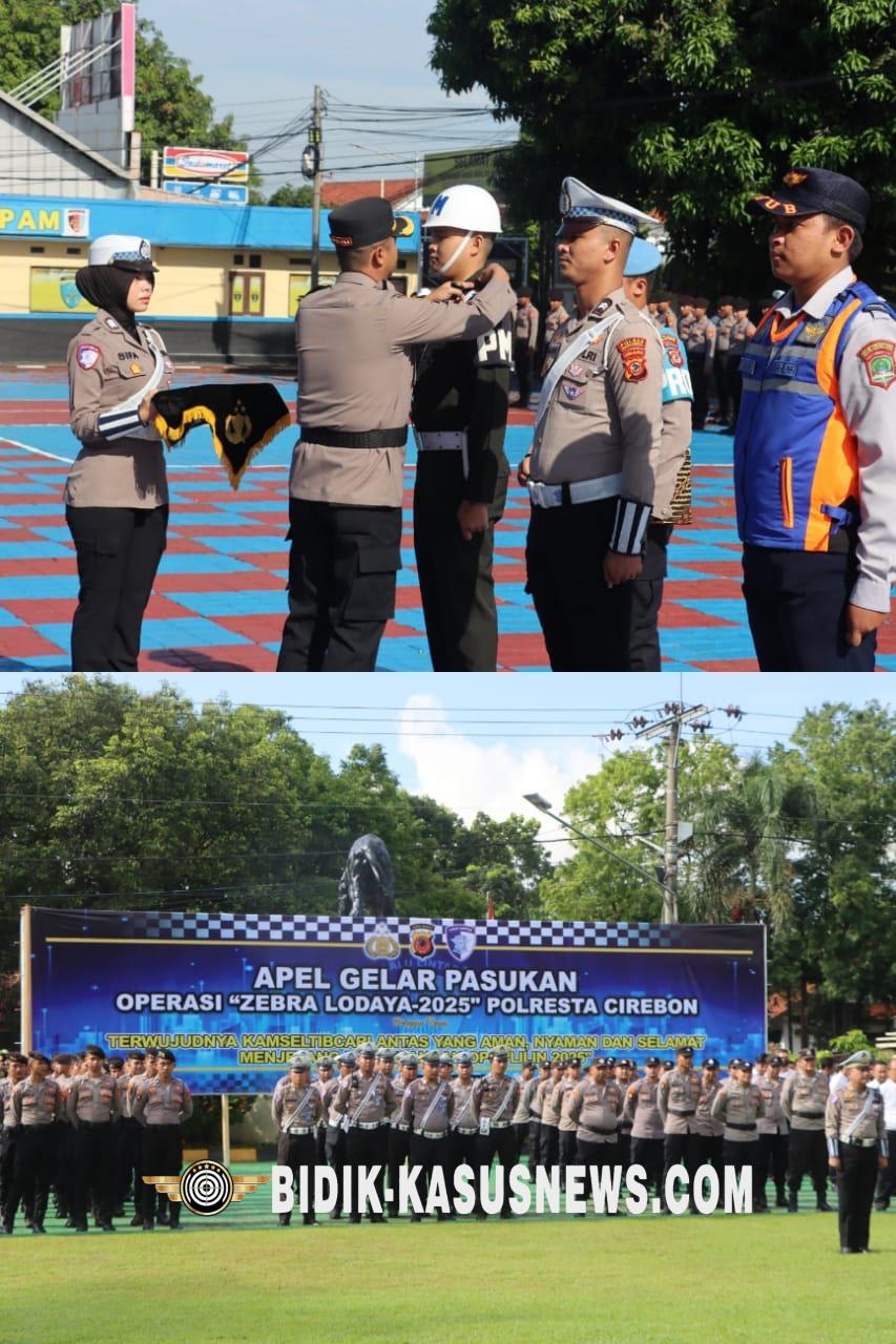 Cirebon Bidik-kasusnews.com,.Jajaran Polresta Cirebon melaksanakan Operasi Zebra Lodaya 2025 mulai hari ini. Operasi tersebut bertujuan mewujudkan kesadaran masyarakat dalam mematuhi keamanan, keselamatan, ketertiban, dan kelancaran (kamseltibcar) lalu lintas di Kabupaten Cirebon. Kapolresta Cirebon, Kombes Pol Sumarni, S.H, S.I.K, M.H, mengatakan, tujuan Operasi Zebra Lodaya 2025 adalah meningkatkan disiplin dan kepatuhan masyarakat dalam berlalu lintas, menurunnya angka pelanggaran dan kecelakaan lalu lintas, dan menurunnya angka fatalitas korban kecelakaan lalu lintas. “Outputnya adalah terciptanya kamseltibcar lantas yang aman dan nyaman, meningkatkan disiplin dan kepatuhan masyarakat dalam berlalu lintas, berkurangnya jumlah kecelakaan dan pelanggaran lalu lintas serta menurunnya angka fatalitas korban kecelakaan,” kata Kombes Pol Sumarni, S.H, S.I.K, M.H, saat ditemui usai Apel Gelar Pasukan Operasi Zebra Lodaya 2025 di Mapolresta Cirebon, Senin (17/11/2025). Ia mengatakan, operasi tersebut dilaksanakan selama 14 hari dari mulai tanggal 17 hingga 30 November 2025. Pihaknya memastikan Operasi Zebra Lodaya 2025, akan mengedepankan upaya preemtif, preventif, dan sikap-sikap humanis. Adapun terdapat tujuh jenis pelanggaran berlalu lintas yang menjadi sasaran utama Operasi Zebra Lodaya 2025 di Kabupaten Cirebon. Di antaranya, pengemudi yang menggunakan ponsel saat berkendara dan pengemudi yang masih dibawah umur. Selain itu, sasaran lainnya adalah pengemudi kendaraan bermotor yang berboncengan lebih satu orang, pengendara sepeda motor yang tidak menggunakan helm SNI dan pengemudi mobil yang tidak menggunakan safety belt atau sabuk keselamatan. “Pengemudi dalam pengaruh atau mengkonsumsi alkohol, pengendara kendaraan bermotor yang melawan arus, dan pengemudi yang melebihi batas kecepatan juga menjadi sasaran dalam Operasi Zebra Lodaya 2025,” ujar Kombes Pol Sumarni, S.H, S.I.K, M.H. Pihaknya berpesan kepada seluruh personel yang terlibat dalam operasi tersebut agar selalu panjatkan doa kepada Tuhan Yang Maha Esa sebelum melaksanakan tugas, mengutamakan keselamatan dalam bertugas, dan melaksanakan kegiatan edukasi tentang tertib berlalulintas. “Semoga operasi ini dapat menurunkan angka pelanggaran lalu lintas, menurunkan angka kecelakaan lalu lintas, menurunkan angka fatalitas korban kecelakaan lalu lintas, dan meningkatkan disiplin serta kepatuhan masyarakat dalam berlalu lintas,” kata Kombes Pol Sumarni, S.H, S.I.K, M.H. (Asep Rusliman)