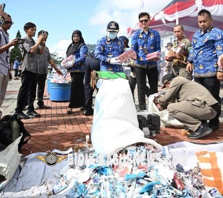 Kuningan Bidik-kasusnews.com,.Pemerintah Kabupaten Kuningan bersama Kantor Pengawasan dan Pelayanan Bea dan Cukai (KPPBC) Tipe Madya Pabean C Cirebon melakukan pemusnahan barang hasil penindakan berupa rokok ilegal sebanyak 7.233.417 batang dari wilayah Ciayumajakuning. Pemusnahan dilakukan secara simbolis dengan membakar 60 ribu batang rokok ilegal di halaman Setda Kabupaten Kuningan usai apel pagi, Senin (17/11/2025). Sementara sisanya dimusnahkan di PT Indocement Tunggal Prakarsa Cirebon. Seluruh barang hasil penindakan dihadirkan dalam kegiatan tersebut. Kepala Kanwil DJBC Jawa Barat, Finarni Manan, menjelaskan bahwa rokok ilegal itu merupakan hasil penindakan gabungan di Kota/Kabupaten Cirebon, Indramayu, Majalengka, dan Kuningan sepanjang Juni hingga Agustus 2025. Menurutnya, nilai total barang hasil penindakan mencapai Rp 10.741.624.245 dengan potensi kerugian negara yang berhasil diselamatkan sebesar Rp 5.396.192.082. Dari jumlah tersebut, penindakan di Kabupaten Kuningan mencapai 650.420 batang rokok ilegal. “Hasil penindakan ini ada yang dilakukan secara mandiri oleh Bea Cukai, ada juga yang merupakan hasil kerja sama dengan Satpol PP. Modus peredaran rokok ilegal meliputi kegiatan targeting, jalur perlintasan, barang kiriman melalui jasa titipan, hingga operasi pasar di toko dan warung,” ujarnya. Finarni menegaskan bahwa Jawa Barat bukan daerah produksi rokok ilegal, melainkan jalur perlintasan dan pemasaran dari Jawa Tengah, Jawa Timur, serta Madura. Penindakan dilakukan di berbagai titik, mulai dari truk lintas provinsi hingga kios kecil di wilayah desa. Ia mengingatkan bahwa menawarkan, menjual, menyimpan, atau menyerahkan rokok ilegal dapat dikenai hukuman penjara 1 hingga 5 tahun serta denda 2 sampai 10 kali nilai cukai. Atas terselenggaranya kegiatan ini, Finarni menyampaikan apresiasi kepada Pemerintah Kabupaten Kuningan yang dinilai konsisten mendukung pemberantasan rokok ilegal melalui pemanfaatan Dana Bagi Hasil Cukai Hasil Tembakau (DBHCHT). Advertisement Bupati Kuningan, Dian Rachmat Yanuar, menyatakan bahwa pemusnahan bukan sekadar penegakan hukum, tetapi bentuk komitmen untuk menjaga kepentingan negara dan melindungi masyarakat. “Jumlah ini tentu tidak kecil. Jika rokok-rokok ilegal tersebut beredar di pasaran, negara dapat mengalami kerugian miliaran rupiah. Selain itu, masyarakat dapat dirugikan karena produk tersebut tidak memiliki jaminan kesehatan maupun standar mutu,” ujarnya. Bupati menambahkan bahwa peredaran rokok ilegal bukan hanya pelanggaran fiskal, tetapi juga merusak ekosistem ekonomi daerah. Karena itu, ia menegaskan pentingnya kolaborasi berkelanjutan antara Pemda dan Bea Cukai dalam upaya penindakan. Ia juga mengajak seluruh pihak produsen, pedagang, hingga konsumen untuk tidak membeli atau mengedarkan rokok yang tidak memenuhi ketentuan, seperti tanpa pita cukai, menggunakan pita palsu, atau pita bekas. Acara pemusnahan turut dihadiri Wakil Bupati Kuningan, Sekda, unsur Forkopimda, Kepala Kanwil DJBC Jawa Barat, Kepala KPKNL Cirebon, Kepala KPP Pratama Kuningan, Kepala BNN Kuningan, jajaran perangkat daerah, perwakilan Satpol PP Ciayumajakuning, serta sejumlah pejabat terkait lainnya. Kehadiran mereka meneguhkan komitmen bersama dalam menciptakan lingkungan ekonomi yang lebih tertib dan sehat. (Asep.R)