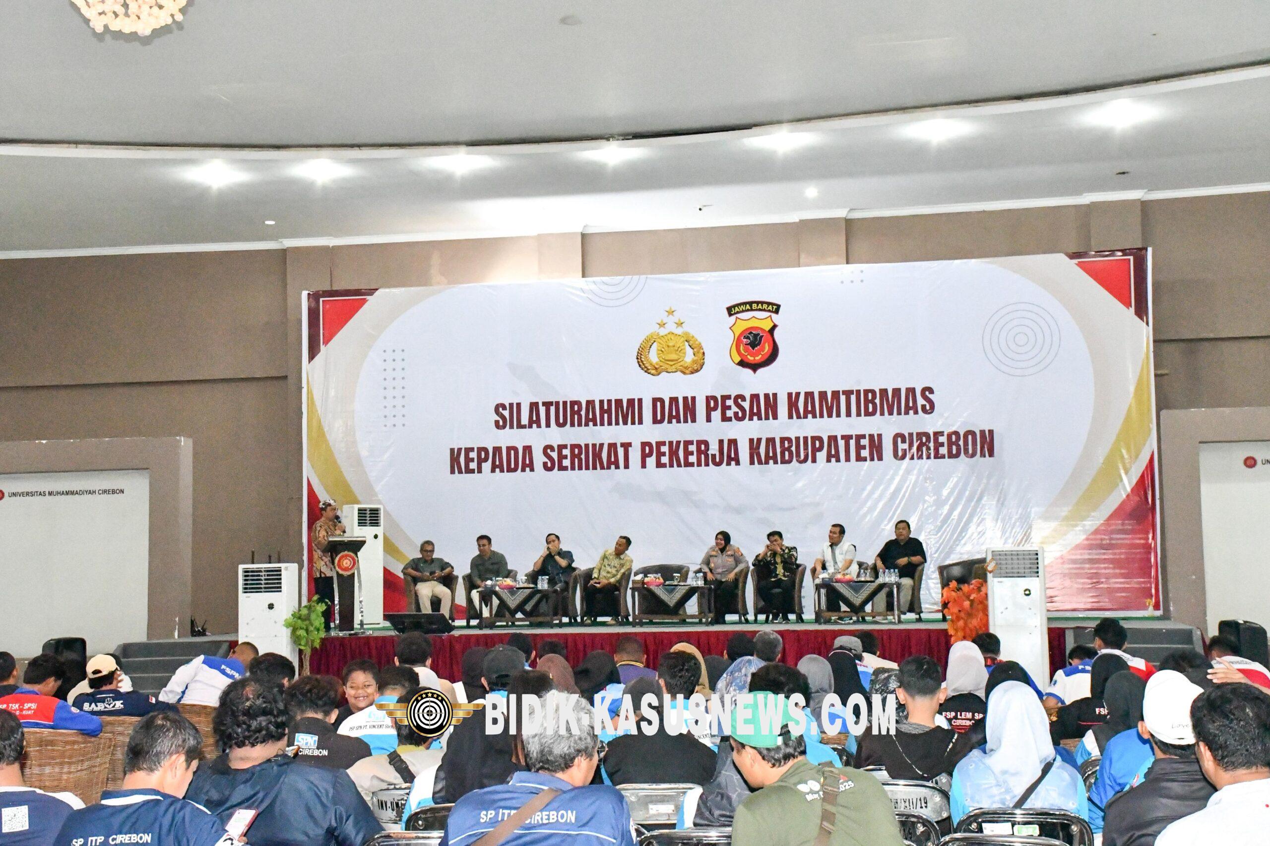 CIREBON Bidik-kasusnews.com,. Dalam rangka mempererat sinergitas antara kepolisian, pemerintah daerah, dunia usaha, dan kalangan pekerja, Polresta Cirebon menggelar kegiatan Silaturahmi dan Pesan Kamtibmas kepada Serikat Pekerja Kabupaten Cirebon pada Sabtu (1/11/2025) bertempat di Convention Hall Universitas Muhammadiyah Cirebon (UMC), Jl. Fatahillah, Kelurahan Watubelah, Kecamatan Sumber, Kabupaten Cirebon. Kegiatan ini dipimpin langsung oleh Kapolresta Cirebon Kombes Pol Sumarni, S.I.K., S.H., M.H., dan dihadiri oleh lebih dari 500 peserta yang terdiri dari unsur Forkopimda Kabupaten Cirebon, pimpinan perusahaan, akademisi, dan perwakilan serikat pekerja maupun serikat buruh se-Kabupaten Cirebon. Turut hadir Bupati Cirebon Drs. H. Imron, M.Ag., Wakil Bupati H. Agus Kurniawan Budiman, Wakil Ketua DPRD Teguh Rusiana Merdeka, S.H., Kadisnakertrans Novi Hendrianto, S.STP., M.Si., Rektor Universitas Muhammadiyah Cirebon, Arif Nurudin, S.T., M.T., Ketua Apindo Ir. Asep Sholeh Fakhrul Insan, S.T., S.H., serta jajaran pejabat utama Polresta Cirebon. Acara dimulai dengan menyanyikan Lagu Kebangsaan Indonesia Raya, doa bersama, dan sambutan dari sejumlah tokoh. Dalam sambutannya, Ketua Aliansi Buruh Cirebon, Amal Subkhan, menyampaikan bahwa keamanan dan ketertiban di lingkungan kerja tidak dapat tercipta tanpa peran aktif semua pihak. “Terciptanya keamanan dan kondusifitas kamtibmas tidak bisa hanya dilakukan oleh aparat, namun juga membutuhkan dukungan dari masyarakat, termasuk kami para buruh,” ujarnya. Rektor Universitas Muhammadiyah Cirebon, Arif Nurudin, S.T., M.T., menyambut baik kegiatan yang diadakan di kampusnya. “Kampus kami siap mendukung kegiatan positif seperti ini. Fasilitas kami terbuka untuk serikat pekerja jika ingin mengadakan pelatihan, olahraga, atau kegiatan sosial lainnya,” katanya. Sementara itu, Ketua Apindo Kabupaten Cirebon, Ir. Asep Sholeh Fakhrul Insan, menegaskan pentingnya hubungan harmonis antara pengusaha dan buruh. “Buruh dan pengusaha tidak dapat dipisahkan. Keduanya adalah dua komponen penting yang saling melengkapi demi kemajuan daerah,” tuturnya. Wakil Ketua DPRD Kabupaten Cirebon, Teguh Rusiana Merdeka, S.H., mengajak seluruh pihak menjaga iklim investasi yang sehat dan menjauhkan diri dari penyalahgunaan narkoba. “Ketika iklim investasi aman, maka kesejahteraan buruh meningkat. Kami berharap rekan-rekan serikat pekerja ikut menjadi garda terdepan dalam menjaga kamtibmas dan mencegah penyalahgunaan narkoba,” tegasnya. Sementara, Kapolresta Cirebon Kombes Pol Sumarni menyampaikan pesan penting terkait peran buruh dalam menjaga keamanan lingkungan kerja dan mendukung stabilitas ekonomi daerah. “Buruh dan pengusaha adalah dua sisi yang saling melengkapi. Sinergi dan kolaborasi di antara keduanya merupakan hal mutlak untuk menciptakan iklim investasi yang baik di Kabupaten Cirebon,” ungkap Kapolresta. Kapolresta menekankan agar serikat pekerja turut aktif menjaga ketertiban di lingkungan kerja, serta menghindari penyalahgunaan narkoba yang dapat merusak masa depan individu dan merugikan dunia usaha. “Kami tidak ingin di lingkungan perusahaan ada penyalahgunaan narkoba. Nantinya akan ada edukasi dari Kasat Narkoba agar kita semua memahami bahaya dan dampaknya,” tambahnya. Ia juga memperkenalkan inovasi pelayanan publik “Bank Sampah Polresta Cirebon”, di mana masyarakat dapat menukarkan sampah yang telah dikelola dengan layanan pembuatan atau perpanjangan SIM dan SKCK. “Kelola sampah di lingkungan masing-masing. Sampah yang terpilah bisa dimanfaatkan melalui layanan Bank Sampah Polresta Cirebon,” jelasnya. Kapolresta turut mengingatkan pentingnya adaptasi terhadap perkembangan teknologi, serta mengimbau agar masyarakat segera melapor jika melihat potensi gangguan keamanan melalui Call Center 110. “Mari bersama-sama menjaga kondusifitas kamtibmas dan iklim investasi agar Cirebon menjadi daerah yang aman, nyaman, dan maju,” pungkasnya. Wakil Bupati Cirebon H. Agus Kurniawan Budiman dalam sambutannya menyampaikan dukungan penuh terhadap kolaborasi antara pemerintah, pengusaha, dan buruh. “Kami ingin Cirebon semakin terbuka bagi investor. Pemerintah berkomitmen mempermudah perizinan, mempercepat proses administrasi, dan memastikan pekerja lokal menjadi prioritas di setiap perusahaan,” katanya. Ia menambahkan bahwa rencananya akan digelar turnamen olahraga antara Forkopimda dan serikat pekerja sebagai wujud mempererat silaturahmi. Sementara itu, Bupati Cirebon Drs. H. Imron, M.Ag. mengajak seluruh elemen masyarakat untuk tetap waspada terhadap pengaruh negatif di era digital. “Kita hidup di era globalisasi di mana informasi begitu cepat menyebar. Jangan mudah terprovokasi dan tetap gunakan akal sehat dalam menyikapi informasi. Mari bersama-sama menjaga keamanan di lingkungan masing-masing,” ujarnya. Bupati juga mengapresiasi langkah Kapolresta Cirebon yang telah menggagas kegiatan yang dinilai mampu mempererat sinergitas antara aparat, buruh, dan pengusaha. Kegiatan kemudian dilanjutkan dengan pemaparan materi dari para narasumber Polresta Cirebon yang memberikan edukasi penting kepada seluruh peserta. Kasat Narkoba Polresta Cirebon AKP Heri Nurcahyo, S.H., M.H., dalam materinya, ia menjelaskan secara rinci tentang bahaya penyalahgunaan narkoba di lingkungan kerja. “Narkoba dapat merusak otak, sistem saraf, dan kesehatan mental seseorang. Dampaknya tidak hanya pada individu, tapi juga menurunkan produktivitas dan membahayakan keselamatan kerja,” jelasnya. AKP Heri juga menyebutkan bahwa penyalahgunaan narkoba dapat berujung pada masalah ekonomi dan sosial. “Selain biaya pengobatan yang mahal, pengguna narkoba berisiko kehilangan pekerjaan, mengalami gangguan keluarga, bahkan terjerat masalah hukum,” terangnya. Ia menutup dengan memberikan tips untuk menjauhkan diri dari narkoba: memilih lingkungan yang sehat, memperkuat kesadaran diri, serta aktif mengikuti kegiatan positif di masyarakat. Kasat Lantas Polresta Cirebo