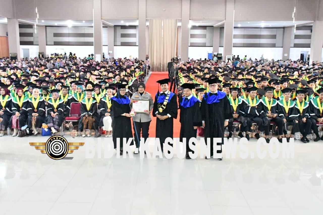 Cirebon Bidik-kasusnews.com,.Kapolresta Cirebon KOMBES POL. SUMARNI, S.I.K., S.H., M.H, menerima Penghargaan TOKOH TELADAN PEDULI GENERASI MUDA dalam Wisuda ke-33 Universitas Muhammadiyah Cirebon Tahun Akademik 2024–2025 di Convention Hall Universitas Muhammadiyah Cirebon Jl. Fatahillah Kel. Watubelah Kec. Sumber Kab. Cirebon, Sabtu (25/10/2025). Penghargaan tersebut diberikan atas dedikasi dan komitmennya dalam mendorong pembinaan serta pemberdayaan generasi muda melalui berbagai kegiatan preemtif dan preventif, kemitraan dengan lembaga pendidikan, serta pembinaan pelajar guna menanamkan nilai disiplin, tanggung jawab, dan semangat kebangsaan di kalangan generasi muda. Pihaknya pun menyampaikan terima kasih kepada keluarga besar UMC yang telah memberikan penghargaan tersebut dalam rangkaian acara Wisuda ke-33 Universitas Muhammadiyah Cirebon Tahun Akademik 2024–2025. “Selama ini Polresta Cirebon sudah berkolaborasi dan bersinergi baik dengan UMC yang dipimpin rektor bapak Arif Nurudin. Beliau adalah tokoh yang inspiratif, humble, adaptif dan solutif beliau sangat memikirkan berbagai persoalan di kabupaten Cirebon,” katanya. Ia meyakini dengan wajah-wajah semringah dan energi energi baru yang ada pada wisudawan UMC karena telah digembleng di UMC yang merupakan universitas terbaik di kabupaten Cirebon bakal membawa Indonesia ke arah yang lebih baik lagi. Namun, ia mengingatkan berbagai persoalan ke depan termasuk masalah bonus demografi, sumber daya alam, kemajuan teknologi, perubahan iklim, perekonomiam bisa menjadi tantangan tapi juga bisa menjadi peluang. Menurutnya, para wisudawan UMC jangan hanya ingin mencari pekerjaan tapi bagaimana menciptakan lapangan pekerjaan untuk seluruh warga masyarakat. Selain itu, jajaran Polresta Cirebon seringkali melakukan kegiatan preemtif seperti pembinaan pelajar dan generasi muda sebagaimana yang diperlihatkan dalam video selayang pandang tadi, berharap bisa menjadi motivasi dan sharing pengetahuan dan leadership kepada generasi muda dalam profesi apapun. Leadership bukan hanya sekedar untuk bagaimana mengarahkan orang lain, bukan hanya bagaimana bisa memotivasi orang lain, bukan hanya bagaimana bisa mengambil keputusan terbaik untuk suatu persoalan, namun kepemimpinan adalah bagaimana seseorang bisa menjadi teladan dan bisa bersama-sama untuk menciptakan pemecahan masalah dari berbagai persoalan. Kami berharap ribuan dari lulusan UMC bisa menjadi bagian di dalamnya, selamat mengabdi dan berbakti pada ibu pertiwi,” pungkasnya. (Asep.R)