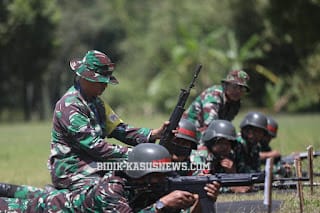 Kuningan Bidik-kasusnews.com,.Kodim 0615/Kuningan menyelanggarakan latihan menembak senjata ringan Semester II Tahun 2025 di Lapangan Tembak Desa Sukamukti, Kecamatan Jalaksana, Kabupaten Kuningan, Senin (15/9/2025). Kegiatan ini dipimpin oleh Komandan Latihan, Kapten Arm Hambali, serta dihadiri Pasi Ops Kodim 0615/Kuningan, Lettu Kav Sutardi, bersama sejumlah pejabat dan personel lainnya. Turut hadir Koordinator materi menembak senapan, Lettu Inf Saniyo, Koordinator materi menembak pistol, Lettu Arh Fatkhu Azis, asistensi teknik dari Denpal Cirebon, Sertu Suryo Widodo, serta jajaran pelatih, pendukung, provost, tim Pos Kes, dan para peserta latihan menembak. Advertisement Kapten Arm Hambali menjelaskan, tujuan latihan ini adalah untuk meningkatkan sekaligus menjaga kemampuan dasar prajurit Kodim 0615/Kuningan agar lebih profesional dalam menjalankan tugas pokok TNI AD. Dalam latihan tersebut, digunakan berbagai perlengkapan seperti senjata SS1 V1 Pindad, pistol P1 Pindad, munisi senapan kaliber 5,56 mm, dan munisi pistol kaliber 9 mm. Untuk materi menembak senapan SS1, prajurit dilatih dalam tiga sikap, yakni tiarap (10 butir penilaian), duduk (10 butir penilaian), dan berdiri (10 butir penilaian). Seluruh rangkaian latihan berjalan dengan tetap mengutamakan faktor keamanan serta keselamatan personel. Asep Rusliman