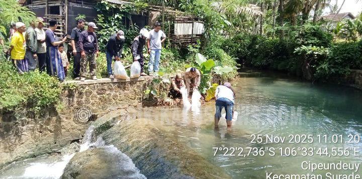 SUKABUMI-BIDIK-KASUSNEWS.COM – Dinas Perikanan Kabupaten Sukabumi melaksanakan kegiatan pelepasliaran atau restocking ikan nilem di aliran Sungai Cibarehong, Desa Cipeundeuy, Kecamatan Surade, Selasa (25/11/2025). Kegiatan ini menjadi bagian dari upaya pelestarian ekosistem sungai dan peningkatan ketersediaan ikan konsumsi bagi masyarakat. Kegiatan restocking turut dihadiri Subkoor Pengawasan Sumber Daya Kelautan dan Perikanan Tangkap, Analis Sumber Daya Ikan, perangkat Desa Cipeundeuy, serta warga sekitar. Sebelum penebaran dilakukan, Dinas Perikanan menyerahkan bibit ikan kepada pemerintah desa. Penyerahan secara simbolis dilakukan oleh Kabid Perikanan Kabupaten Sukabumi, Susanti, dan diterima langsung Kepala Desa Cipeundeuy, Bakang Anwar As’Adi, didampingi Kasi Perencanaan Desa, Entang atau Memen. Sebanyak 10.000 ekor benih ikan nilem dibagikan dalam 25 kantong untuk ditebar di tiga titik yakni Sungai Cibarehong, Sungai Cipamarangan, dan irigasi Ciharashas. Ikan nilem merupakan jenis ikan lokal yang banyak ditemukan di perairan umum berarus jernih. Selain bernilai ekonomis, ikan ini digemari masyarakat dan dapat mendukung pemenuhan gizi sehingga sejalan dengan program penurunan angka stunting di Kabupaten Sukabumi. Dinas Perikanan mengajak warga untuk menjaga keberlanjutan ikan dengan tidak membuang sampah ke sungai, tidak menggunakan alat tangkap berbahaya seperti setrum dan racun, serta bersama-sama mengawasi potensi pencemaran limbah. Susanti juga mendorong pemerintah desa menyusun Perdes tentang pengelolaan perairan sebagai tindak lanjut dari Perda Kabupaten Sukabumi Nomor 1 Tahun 2023. Kepala Desa Cipeundeuy, Bakang Anwar As’Adi, menyampaikan terima kasih atas bantuan benih ikan yang diberikan. Ia berharap langkah ini menjadi awal pelestarian ikan di wilayahnya dan ke depan bantuan serupa dapat terus bertambah. Ia pun mengimbau masyarakat agar tidak melakukan praktik penangkapan ikan secara destruktif. Menurutnya, ikan yang ditebar perlu diberi kesempatan berkembang biak sebelum dimanfaatkan oleh warga melalui kegiatan memancing. Bakang berharap restocking ini membawa manfaat jangka panjang bagi masyarakat, terutama dalam meningkatkan pemenuhan gizi keluarga dan menjaga kelestarian sungai. (Dicky)