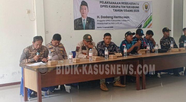 SUKABUMI-BIDIK-KASUSNEWS.COM – Anggota DPRD Kabupaten Sukabumi dari Fraksi PKB, H. Dadang Hermawan, melaksanakan Reses ke Satu Masa Sidang Tahun 2026 di Aula Desa Purwasedar, Kecamatan Ciracap, Rabu 4 Februari 2026. Kegiatan reses tersebut dihadiri Kepala Desa Purwasedar beserta perangkat desa, tokoh masyarakat, serta puluhan warga dari daerah pemilihan VI Kabupaten Sukabumi. Reses merupakan agenda rutin anggota DPRD yang diamanatkan undang-undang sebagai sarana bertemu langsung dengan konstituen guna menyerap, mendengar, serta mengawal aspirasi masyarakat agar dapat direalisasikan oleh pemerintah daerah. Dalam kesempatan itu, H. Dadang Hermawan menegaskan bahwa seluruh aspirasi yang disampaikan masyarakat akan dirangkum dan dibahas bersama pimpinan DPRD untuk selanjutnya diperjuangkan melalui mekanisme rapat paripurna. “Aspirasi dari bapak dan ibu semua kami tampung, kami rangkum, dan akan kami diskusikan dengan pimpinan agar dapat ditindaklanjuti,” ujarnya. Berbagai aspirasi masyarakat mencuat dalam reses tersebut, di antaranya perbaikan dan pembangunan infrastruktur jalan, bantuan alat dan mesin pertanian, permodalan UMKM, perbaikan rumah tidak layak huni, jalan lingkungan, sarana air bersih, drainase, pembangunan TPT, serta saluran air pertanian. H. Dadang Hermawan juga menjelaskan peran dan kewenangannya sebagai anggota DPRD yang bertugas di Komisi III, khususnya dalam menjaring dan mengawal kebutuhan masyarakat di berbagai sektor pembangunan. “Semua usulan masyarakat akan menjadi bahan kajian agar dapat direalisasikan sesuai kewenangan dan program pemerintah daerah,” tegasnya. Selain itu, ia turut menyinggung Program Kawasan Desa Mitra Potensial (KDMP) sebagai langkah strategis pemerintah dalam mendorong penguatan ekonomi desa secara berkelanjutan, termasuk pengembangan usaha, branding produk, dan strategi pemasaran. Ia juga menekankan pentingnya dukungan terhadap pinjaman bergulir serta penguatan ketahanan pangan, khususnya pada kelompok perikanan agar dapat berjalan optimal. “Mari kita benahi bersama dan dorong keberlangsungan program ketahanan pangan agar benar-benar dirasakan manfaatnya oleh masyarakat,” pungkasnya. (Dicky)