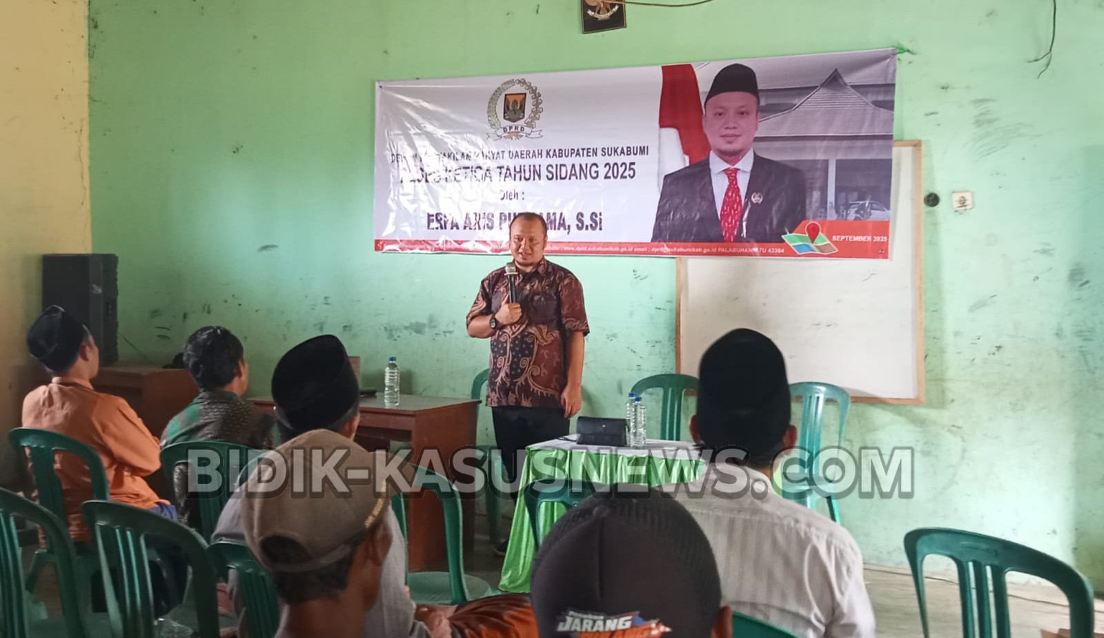 SUKABUMI-BIDIK-KASUSNEWS.COM- Anggota DPRD Kabupaten Sukabumi dari Fraksi PKS, Erpa Aris Purnama, S.Si, menggelar reses ketiga masa sidang 2025 di Kampung Cisaat RT 005 RW 002, Desa Buniwangi, Kecamatan Surade, Selasa (16/9/2025). Kegiatan ini dimanfaatkan masyarakat untuk bersilaturahmi sekaligus menyampaikan aspirasi, mulai dari persoalan infrastruktur hingga kebutuhan pembangunan desa. Semua masukan tersebut akan dihimpun menjadi Pokok Pikiran (Pokir) DPRD dan disampaikan kepada Pemerintah Kabupaten Sukabumi. “Sebagai wakil rakyat, kami berkomitmen menjaring aspirasi masyarakat secara optimal agar Pokir benar-benar mewakili kebutuhan riil warga, khususnya di Dapil VI,” ujar Erpa. Ia menambahkan, mayoritas keluhan warga yang diserap dalam reses kali ini berkaitan dengan perbaikan saluran irigasi yang rusak dan mengganggu aktivitas para petani. “Melalui reses ini, aspirasi masyarakat akan kami perjuangkan agar dapat diakomodir dan menjadi prioritas dalam perencanaan pembangunan daerah,” jelasnya. Legislator PKS ini menegaskan, reses menjadi momen penting untuk mendengar langsung keluhan masyarakat sekaligus mencari solusi bersama. “Kami selalu siap melayani masyarakat dengan setulus hati. Semua usulan akan disesuaikan dengan kemampuan anggaran dan skala prioritas,” tandasnya. (Dicky)