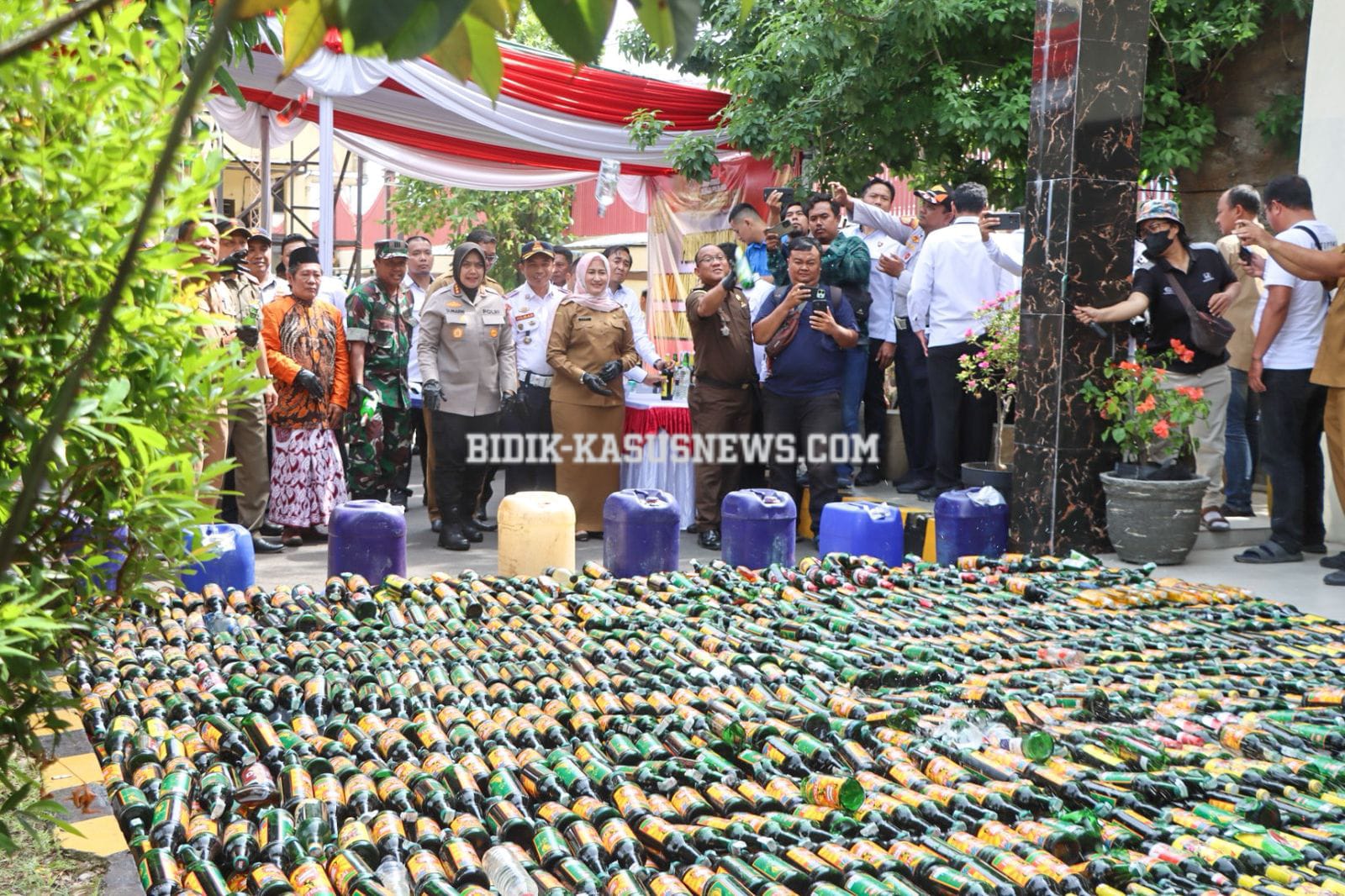 Cirebon Bidik-kasusnews.com,.Jajaran Polresta Cirebon memusnahkan ribuan minuman keras (miras) berbagai merek dan knalpot tidak sesuai spesifikasi teknis, Senin (29/9/2025). Miras dan knalpot tidak sesuai spesifikasi teknis yang dimusnahkan tersebut merupakan hasil KRYD dan Operasi Pekat Polresta Cirebon serta Polsek jajaran. Kapolresta Cirebon, Kombes Pol Sumarni, S.I.K, S.H, M.H, mengatakan, miras dan knalpot tidak sesuai spesifikasi teknis yang dimusnahkan tersebut hasil merupakan hasil KRYD dan operasi pekat di wilayah Kabupaten Cirebon selama satu bulan terakhir. Selain itu, penindakan knalpot yang tidak sesuai spesifikasi teknis dikarenakan sangat mengganggu masyarakat. “Polresta Cirebon bersama jajaran dan seluruh Forkopimda pada pelaksanaan KRYD selama hampir 21 bulan ini tetap konsisten melaksanakan kegiatan dalam melindungi warga masyarakat Kabupaten Cirebon, melindungi anak-anak generasi muda Kabupaten Cirebon dengan cara menindak tegas peredaran minuman keras dari berbagai merk baik dari miras pabrikan, miras tradisional, termasuk jenis lainnya,” ujar Kombes Pol Sumarni, S.I.K, S.H, M.H. Ia mengatakan, jumlah miras yang dimusnahkan dalam kegiatan kali ini terdiri dari berbagai merek minuman keras pabrikan sebanyak 1.980 Botol, minuman keras tradisional jenis ciu sebanyak 7.347 botol, minuman keras tradisional jenis tuak sebanyak 426 liter, dan knalpot tidak sesuai spesifikasi teknis 2.560 buah. Pihaknya menegaskan Polresta Cirebon dan Polsek jajaran tidak akan pernah berhenti menggelar razia miras maupun knalpot tidak sesuai spesifikasi teknis karena sudah mendapatkan edaran dari Gubernur Jawa Barat, dan diperintahkan Kapolda Jawa Barat untuk secara tegas menindak penggunaan knalpot yang tidak sesuai dengan spesifikasi teknis. Polresta Cirebon dan Forkopimda Kabupaten Cirebon mengajak seluruh elemen masyarakat untuk peduli mengawasi penggunaan knalpot tidak sesuai spesifikasi teknis oleh anak-anaknya atau keluarganya, karena jangan sampai digunakan, jangan membuat kegaduhan, dan mengganggu ketidaknyamanan di lingkungan masyarakat. “Polresta Cirebon dan Forkopimda Kabupaten Cirebon juga mengajak kepada seluruh pelaku usaha yang masih menjual minuman keras, minuman memabukan, yang membuat warga masyarakat Kabupaten Cirebon yang berada dalam potensi-potensi yang membahayakan tolong tidak dilanjutkan lagi,” kata Kombes Pol Sumarni, S.I.K, S.H, M.H. Sementara itu Kasat Pol PP Kab. Cirebon H. IMAM USTADI, S.Si., M.Si., menyampaikan Forkopimda Kabupaten Cirebon sangat mendukung dengan adanya kegiatan itu dan mengucapkan banyak terimakasih kepada Polresta Cirebon. Pemusnahan barang bukti tersebut merupakan bukti nyata dari tindakan dan komitmen untuk memberantas penyakit masyarakat. “Kami sangat bangga atas kepemimpinan Kapolresta Cirebon dan Jajaran yang semangat untuk memberantas penyakit masyarakat di Wilayah Kabupaten Cirebon. Pemerintah Daerah Kabupaten Cirebon juga akan menindaklanjuti dan melaksanakan penertiban serta pengamanan terhadap miras, akan mendukung penuh Forkipimda Kabupaten Cirebon,” jelasnya. Senada, Ketua MUI Kab. Cirebon KH. ZAMZAMI AMIN, mengucapkan terimakasih dan apresiasi atas kegiatan rutin pemusnahan barang bukti miras dan knalpot yang tidak sesuai spesifikasi teknis. Pihaknya pun merasa bangga kepada Polresta Cirebon karena kegiatan semacam itu akan menyehatkan warga masyarakat Kabupaten Cirebon. “Kami mengapresiasi setinggi-tingginya atas langkah tegas Polresta Cirebon dalam memusnahkan ribuan botol minuman keras hasil operasi penertiban penyakit masyarakat. Terimakasih yang sebesar-besarnya dengan adanya pemusnahan ini, Cirebon tetap dapat mempertahankan wilayah yang kondusif, agar kabupaten Cirebon bisa tetap aman dan nyaman,” paparnya. (Asep Rusliman)