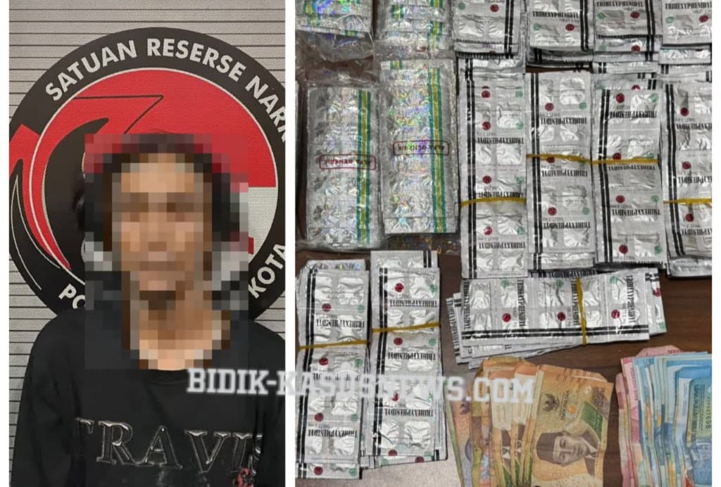 Cirebon Kota Bisik-kasusnews.com,. Seorang pria inisial Z ditangkap polisi di Jalan Rinjani VIII, Kelurahan Larangan, Kecamatan Harjamukti, Kota Cirebon Tersangka ditangkap pada Selasa malam, 14 Oktober 2025 sekitar 23.00 WIB oleh anggota Satuan Reserse Narkoba Polres Cirebon Kota. Penangkapan tersangka Z berawal dari laporan masyarakat terkait kasus penyalahgunaan obat keras tanpa izin edar di wilayah hukum Polres Cirebon Kota. Kasat Reserse Narkoba Polres Cirebon Kota AKP Otong Jubaedi, menjelaskan bahwa warga melaporkab adanya aktivitas peredaran obat keras terbatas di lingkungan tersebut. Berdasarkan laporan itu, anggota Unit II Satres Narkoba segera melakukan penyelidikan dan berhasil mengamankan satu orang pelaku yang tengah membawa sejumlah obat sediaan farmasi tanpa izin edar. Dari hasil penggeledahan di lokasi kejadian, petugas menemukan barang bukti berupa 1.165 butir pil jenis Trihexyphenidyl dan 1.300 butir pil jenis Tramadol, yang disimpan dalam kantong plastik warna hitam. Selain itu, turut diamankan uang tunai sebesar Rp1.310.000, 1 unit handphone merek Vivo warna biru, 1 buah tas selempang warna abu-abu, serta 1 unit sepeda motor Yamaha Mio Soul warna merah yang digunakan untuk aktivitas pengantaran. “Jumlah barang bukti yang disita mencapai 2.465 butir obat keras dari dua jenis berbeda. Obat-obatan ini seharusnya hanya bisa diperoleh dengan resep dokter dan penggunaannya diawasi ketat karena berpotensi disalahgunakan,” ungkap AKP Otong Jubaedi. Ia menambahkan, berdasarkan pemeriksaan awal, pelaku diduga telah mengedarkan obat tersebut kepada pembeli di wilayah Cirebon dengan sistem transaksi langsung. Satres Narkoba masih melakukan pengembangan untuk mengungkap kemungkinan adanya jaringan pemasok di balik peredaran obat terlarang tersebut. Tersangka kini telah ditahan di Mapolres Cirebon Kota untuk proses hukum lebih lanjut. Polisi menjerat pelaku dengan Pasal 435 jo Pasal 436 ayat (2) Undang-Undang Nomor 17 Tahun 2023 tentang Kesehatan, dengan ancaman hukuman penjara maksimal 12 tahun. (Asep.R)