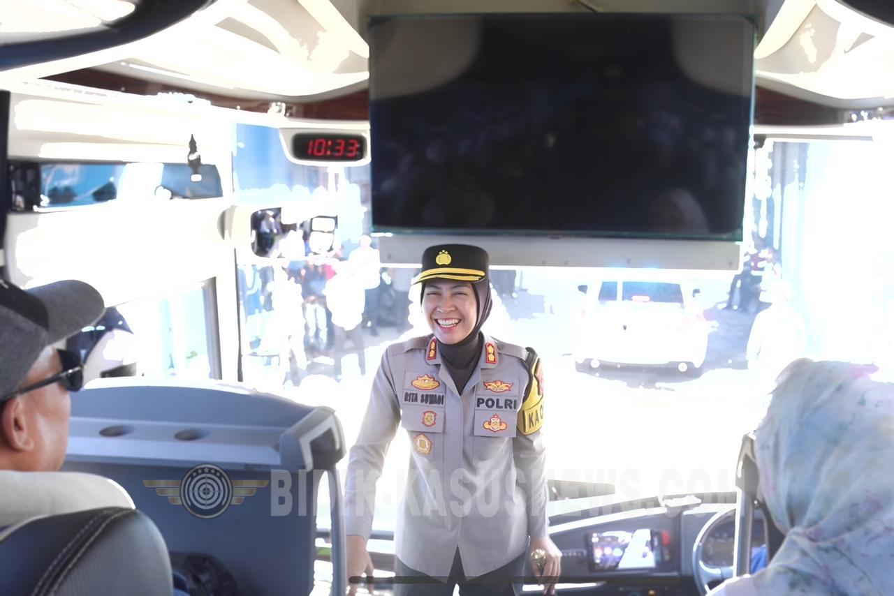 Majalengka,Bidik-kasusnews.com,.Menjelang arus mudik Lebaran 2026, Polres Majalengka menggelar program mudik gratis rute Majalengka–Semarang. Kegiatan tersebut secara resmi diberangkatkan oleh Kapolres Majalengka, AKBP Rita Suwadi, pada Kamis (19/3/2026). Sebanyak dua unit bus disiapkan dalam program ini untuk mengangkut sekitar 120 pemudik menuju Semarang. Pelepasan peserta berlangsung penuh antusias, mencerminkan tingginya minat masyarakat terhadap layanan mudik gratis yang aman dan terorganisir. Kapolres Majalengka AKBP Rita Suwadi mengatakan, program ini merupakan bagian dari upaya kepolisian dalam mengantisipasi lonjakan kendaraan pribadi selama musim mudik. “Program mudik gratis ini merupakan langkah preventif untuk menekan peningkatan volume kendaraan di jalan, sehingga potensi kemacetan dan risiko kecelakaan dapat diminimalisir,” ujarnya. Selain sebagai bentuk pelayanan kepada masyarakat, program ini juga menjadi strategi pengamanan arus mudik agar tetap lancar dan terkendali. Dengan berkurangnya penggunaan kendaraan pribadi, diharapkan kepadatan lalu lintas di jalur utama dapat ditekan. Polres Majalengka berharap, melalui program ini masyarakat dapat merasakan perjalanan mudik yang lebih aman dan nyaman, sekaligus mendukung terciptanya lalu lintas yang tertib selama periode Lebaran 2026. (Asep Rusliman)
