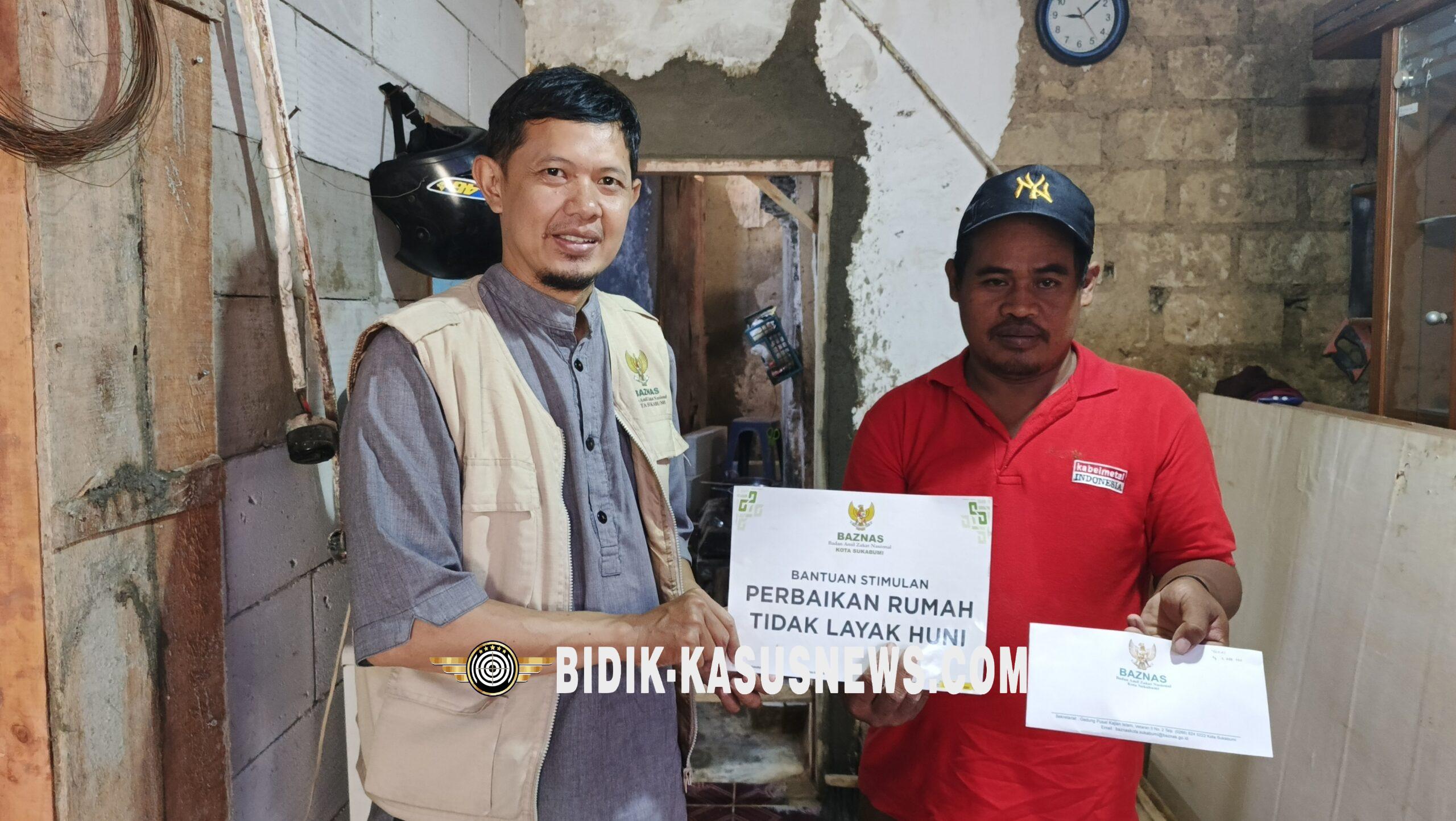 SUKABUMI-BIDIK-KASUSNEWS.COM – Baznas Kota Sukabumi, menyalurkan bantuan stimulan perbaikan rumah tidak layak huni (Rutilahu) kepada Yandi warga Kampung Tegalwangi Kelurahan Sukakarya Kecamatan Warudoyong Kota Sukabumi, Jumat (22/11/2025). Jumlah bantuan sebesar Rp2 juta. Bantuan diserahkan staf lapangan BAZNAS Kota Sukabumi, Wawan Setiawan dan diterima langsung oleh Yandi selaku kepala rumah tangga. Wawan mengatakan, bantuan tersebut sebagai bentuk kepedulian Baznas terhadap warga yang tengah dapat musibah. ”Alhamdulillah, hari ini saya bisa menyampaikan amanat ini. Mudah-mudahan bantuan bermanfaat untuk memulihkan kembali kondisi bangunan agar bisa ditempati secara layak,” kata Wawan. Sebagai lembaga terpercaya, BAZNAS sangat konsen dengan hal-hal yang bersifat kemanusiaan apalagi menyangkut hajat hidup orang banyak terutama warga yang rumahnya terkena dampak bencana beberapa waktu lalu. Sementara itu penerima bantuan, Yandi yang didampingi istri Rani menghaturkan banyak terimakasih pada BAZNAS yang telah mengulurkan bantuan berupa uang tunai untuk membantu menyelesaikan perbaikan rumahnya. “Kami sangat berterimakasih pada BAZNAS atas bantuan yang diberikan. Semoga dengan bantuan ini dapat mempercepat proses penyelesaian perbaikan rumah kami,” ujarnya. (Usep)