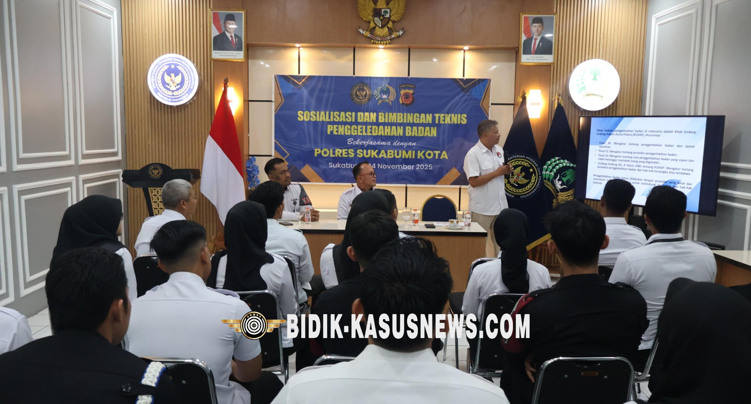 SUKABUMI-BIDIK-KASUSNEWS.COM – Lembaga Pemasyarakatan (Lapas) Kelas IIB Sukabumi terus memperkuat sistem keamanan internal melalui kegiatan Sosialisasi dan Bimbingan Teknis (Bimtek) Penggeledahan Badan, yang digelar bekerja sama dengan Satuan Reserse Narkoba Polres Sukabumi Kota. Kegiatan yang berlangsung di Aula Lapas ini diikuti oleh petugas Pintu Utama (P2U) serta petugas penggeledah pria dan wanita. Tujuannya, meningkatkan kapasitas dan profesionalisme petugas dalam menjalankan prosedur pemeriksaan sesuai standar keamanan dan prinsip hak asasi manusia. Kepala Lapas Kelas IIB Sukabumi, Budi Hardiono, membuka kegiatan sekaligus menegaskan pentingnya peningkatan disiplin dan integritas dalam pelaksanaan tugas. “Kami ingin memastikan setiap petugas memahami tata cara penggeledahan sesuai aturan. Profesionalisme dan ketelitian adalah benteng utama dalam mencegah peredaran barang terlarang di dalam lapas,” ujar Budi. Materi bimtek disampaikan oleh IPTU H. Rahmat Mulyadi, S.H. dari Satres Narkoba Polres Sukabumi Kota. Ia memaparkan dasar hukum penggeledahan berdasarkan KUHAP, teknik pemeriksaan bagi pria dan wanita, serta etika petugas dalam menjalankan tugas di lapangan. Para peserta juga mengikuti praktik langsung penggeledahan badan sesuai Standar Operasional Prosedur (SOP), termasuk cara penanganan apabila ditemukan barang terlarang. Sesi tanya jawab yang interaktif menutup rangkaian kegiatan, memberi ruang bagi petugas untuk memperdalam pemahaman tentang aspek hukum dan teknis penggeledahan. Melalui kegiatan ini, Lapas Kelas IIB Sukabumi menegaskan komitmennya untuk terus bersinergi dengan Polres Sukabumi Kota dalam menciptakan lingkungan pemasyarakatan yang aman, tertib, dan bebas dari penyalahgunaan barang terlarang. Bimtek ditutup dengan doa dan foto bersama, menandai semangat kebersamaan dan peningkatan profesionalisme aparatur pemasyarakatan. (Usep)