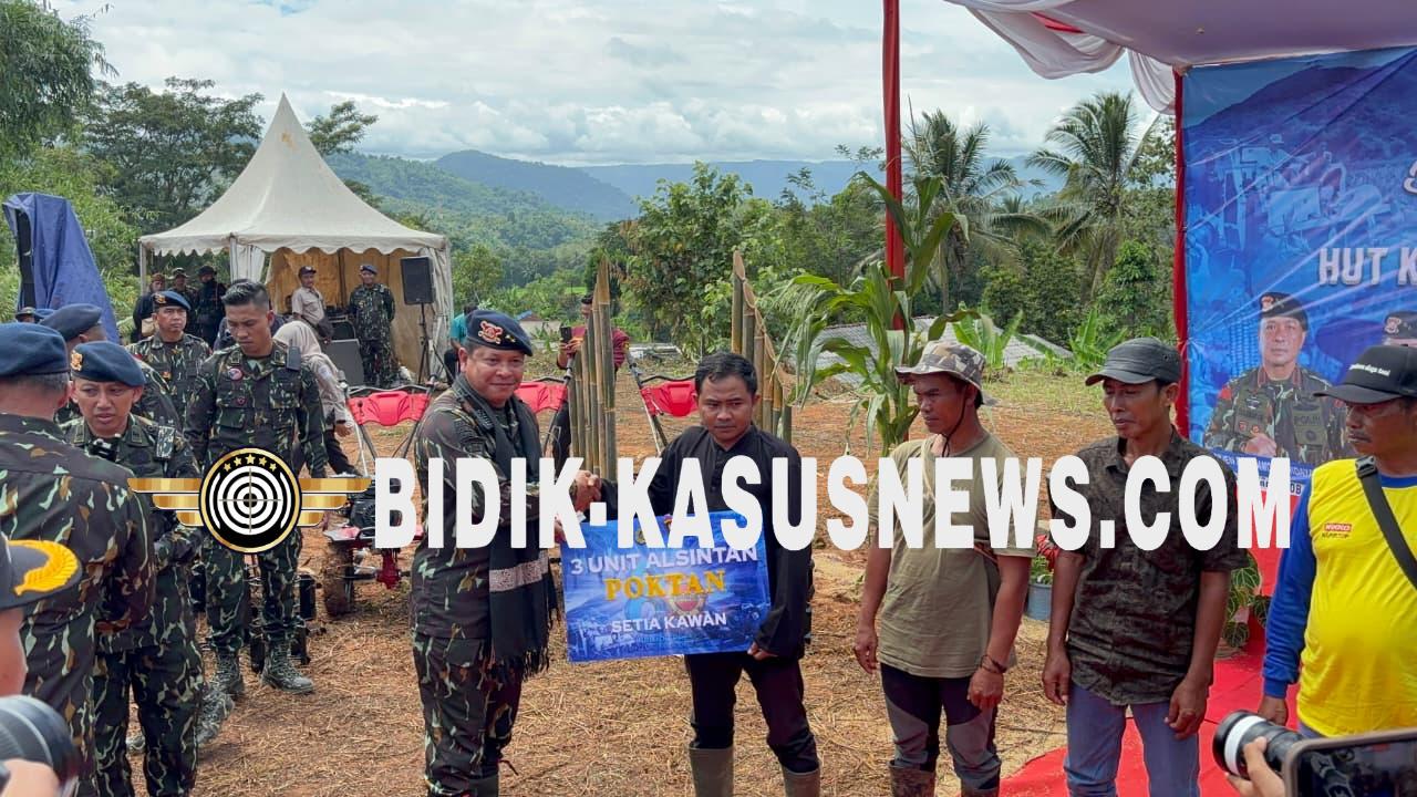 SUKABUMI, BIDIK-KASUSNEWS.COM — Dalam rangka menyambut Hari Ulang Tahun (HUT) ke-80 Korps Brimob Polri yang akan jatuh pada 14 November 2025 mendatang, Brimob Polri menggelar kegiatan bakti sosial dan pembangunan Tugu Pelopor di Desa Cibodas, Kecamatan Pelabuhanratu, Kabupaten Sukabumi, Jawa Barat, dengan mengusung tema “Brimob Presisi untuk Masyarakat.” Kegiatan ini tidak hanya bertujuan mempererat sinergi antara Brimob Polri dan masyarakat, tetapi juga sebagai bentuk dukungan terhadap peningkatan sektor pertanian di wilayah Pelabuhanratu. Melalui pemberian bantuan sarana pertanian dan bibit unggul, Brimob berharap dapat membantu petani meningkatkan produktivitas sebagai bagian dari kontribusi terhadap program Astacita Menuju Indonesia Emas 2045. Dalam kesempatan tersebut, Brimob Polri menyerahkan bantuan berupa 18 unit alat dan mesin pertanian (alsintan), 204 kilogram benih jagung, serta 200 paket sembako untuk enam kelompok tani dan anak yatim piatu. Enam kelompok tani yang menerima bantuan adalah Setia Kawa, Mukti, Tumaritis Triloka, Pandawa Siaga, Sejahtera, dan Mekar Harapan, dengan total penerima manfaat sebanyak 130 petani. Selain penyerahan bantuan, acara juga diisi dengan penanaman benih jagung secara simbolis sebagai bentuk semangat gotong royong dan kepedulian sosial Brimob terhadap kesejahteraan masyarakat. Turut hadir dalam kegiatan tersebut Dirjen Pertanian, jajaran Forum Komunikasi Pimpinan Daerah (Forkopimda) Kabupaten Sukabumi, serta sejumlah pejabat utama Korps Brimob Polri. Kehadiran mereka diharapkan dapat memperkuat kolaborasi lintas sektor untuk mendukung ketahanan pangan daerah. Masih dalam rangkaian kegiatan yang sama, dilakukan pula peletakan batu pertama pembangunan Tugu Pelopor di Bukit Senyum, Pelabuhanratu. Prosesi ini dipimpin langsung oleh Wakil Komandan Korps Brimob Irjen Pol Reza Arief Dewanto, didampingi Komandan Pasukan Pelopor Brigjen Pol Gatot Mangkurat Putra P.J., S.I.K., dan Komandan Pasukan Gegana Brigjen Pol Mulyadi. Tugu Pelopor dibangun sebagai simbol penghormatan terhadap nilai-nilai kejuangan Resimen Pelopor Brimob yang dahulu menjalani latihan di kawasan Pelabuhanratu, termasuk latihan Terjun Payung dan Rimba Laut. Tugu berbentuk persegi lima setinggi 2,5 meter dan lebar 1,2 meter itu dilengkapi logo Roda Kompas berukuran 40 x 40 sentimeter, serta prasasti di bagian bawahnya. Melalui kegiatan bakti sosial dan pembangunan monumen bersejarah ini, Korps Brimob Polri menegaskan komitmennya untuk terus hadir di tengah masyarakat, menjaga hubungan harmonis, serta melestarikan semangat juang dan pengabdian yang telah menjadi bagian dari sejarah panjang Brimob Polri. ( Agus)