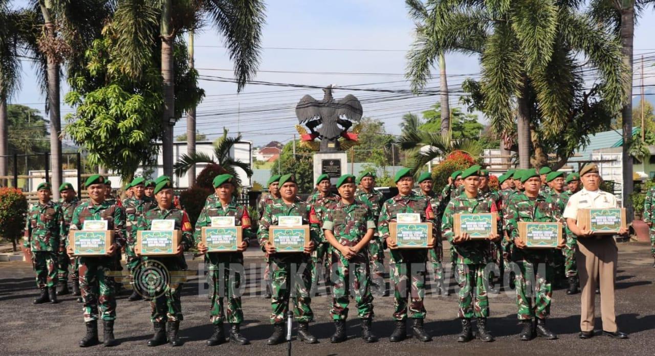 BIDIK-KASUSNEWS.COM Bandar Lampang – Menyambut Hari Raya Idul Fitri 1447 H sekaligus meningkatkan profesionalisme satuan, Komandan Kodim 0410/KBL Kolonel Arm Roni Hermawan, S.H., M.M. memimpin langsung pembagian bingkisan Hari Raya kepada jajarannya. Kegiatan berlangsung di Lapangan Apel Kodim setempat, Senin (16/3/2026). Turut hadir dalam kegiatan tersebut para Perwira Staf (Pasi), Danramil jajaran, serta seluruh Prajurit dan Pegawai Negeri Sipil (PNS) Kodim 0410/KBL. Dalam arahannya, Dandim menekankan pentingnya kedisiplinan waktu dan tanggung jawab sebagai prajurit. Ia mengingatkan seluruh personel untuk tetap waspada mengingat status siaga 3 yang masih berlaku serta mempersiapkan perlengkapan protap (prosedur tetap) guna menghadapi kemungkinan tugas mendadak. Rencananya, pada tanggal 25 Maret mendatang akan dilaksanakan pengecekan kesiapan personel dan perlengkapan. Menyikapi personel yang terlibat pengamanan Pos Yan (Pos Pelayanan) selama Ramadhan, Dandim berpesan agar tidak meninggalkan pos tanpa koordinasi dengan rekan jaga. “Jangan sampai pos kosong, karena hal itu mencerminkan kurangnya tanggung jawab,” tegasnya. Terkait cuti Hari Raya, Kolonel Roni Hermawan mengingatkan personel untuk memastikan keamanan rumah sebelum ditinggalkan, seperti memeriksa instalasi listrik dan gas. Bagi yang menggunakan kendaraan pribadi, ia mengimbau agar dilakukan servis terlebih dahulu demi keselamatan perjalanan. Ia juga melarang keras penggunaan kendaraan dinas untuk kepentingan cuti. Lebih lanjut, Dandim menginstruksikan jajaran Unit Intelijen dan Koramil untuk aktif mendeteksi dan melaporkan perkembangan situasi keamanan menjelang Lebaran, khususnya di titik-titik rawan seperti pasar, malam takbir, dan lokasi pelaksanaan Salat Ied. Di akhir arahannya, Dandim menyerahkan secara simbolis bingkisan Hari Raya yang berasal dari internal satuan. “Ini bingkisan dari kita dan untuk kita sendiri. Manfaatkan untuk keluarga di rumah dan sampaikan salam hormat saya untuk mereka,” ujar Kolonel Roni. Kegiatan yang berlangsung hingga pukul 09.00 WIB tersebut berjalan dengan tertib dan aman. Pelapor menyampaikan bahwa pembagian bingkisan ini bertujuan untuk meningkatkan moril dan memberikan kebahagiaan kepada prajurit beserta keluarga sebagai bentuk kepedulian dan apresiasi pimpinan atas pengabdian dan dedikasi mereka selama ini. (Agus)