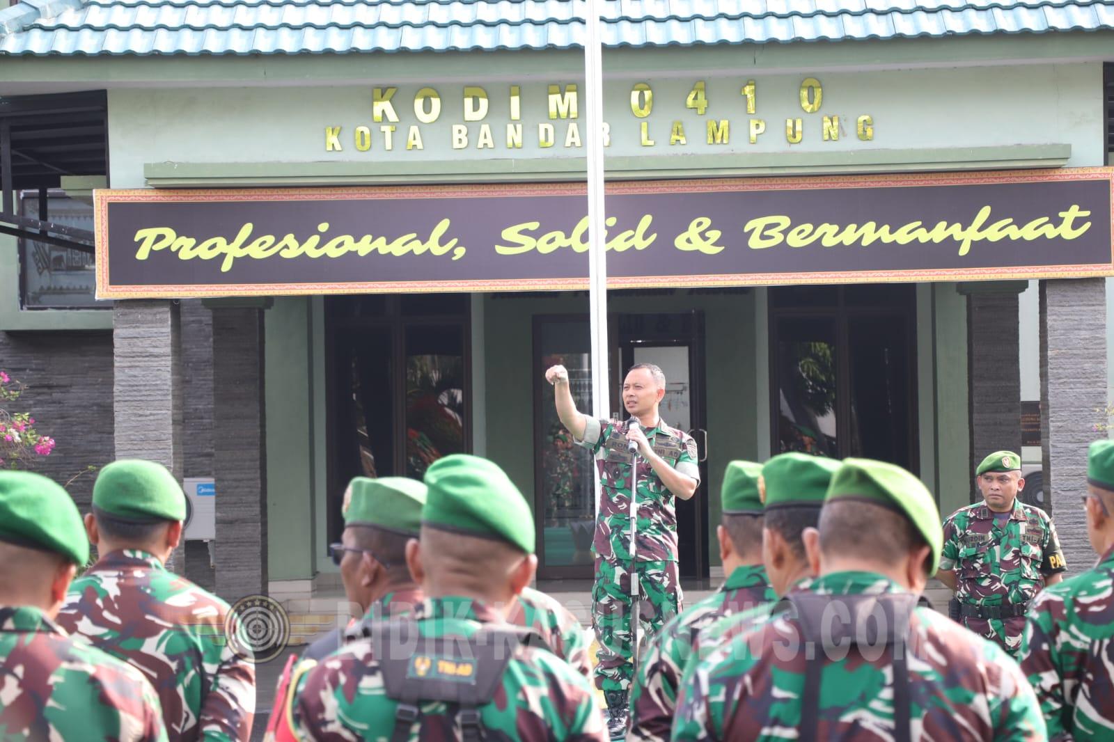 BIDIK-KASUSNEWS.COM Bandar Lampung, 16 Maret 2026 – Komandan Kodim 0410/Kota Bandar Lampung (KBL), Kolonel Arm Roni Hermawan, S.H., M.M., menyerahkan bantuan perangkat keras berupa laptop kepada tiga staf strategis di lingkungan Makodim, Senin (16/3/2026). Penyerahan berlangsung usai Apel Pagi di Lapangan Apel Kodim 0410/KBL, Jl. Imam Bonjol, Bandar Lampung. Adapun penerima bantuan tersebut adalah Staf Operasi (Ops), Staf Penerangan Kodim (Pendim), dan Staf Juyar. Pemberian laptop ini bertujuan untuk mendukung kelancaran tugas administrasi, operasional kewilayahan, publikasi satuan, serta pengolahan data strategis. Komandan Kodim dalam sambutannya menegaskan bahwa peningkatan sarana prasarana merupakan bagian dari upaya membangun profesionalisme prajurit. “Dengan perangkat yang memadai, kita berharap setiap staf dapat bekerja lebih cepat, efektif, dan akurat dalam mendukung tugas pokok satuan,” ujar Dandim di hadapan para Perwira Staf (Pasi), Danramil, serta seluruh Prajurit dan PNS jajaran Kodim 0410/KBL. Kegiatan yang berlangsung khidmat dari pukul 08.00 hingga 09.00 WIB ini juga menjadi momentum bagi Dandim untuk memberikan pengarahan penguatan soliditas dan kedisiplinan prajurit. Dengan penambahan perangkat keras ini, diharapkan Staf Ops, Pendim, dan Juyar dapat mengoptimalkan kinerja, baik dalam pelayanan kepada masyarakat maupun dalam mendukung komando kewilayahan. (Agus)