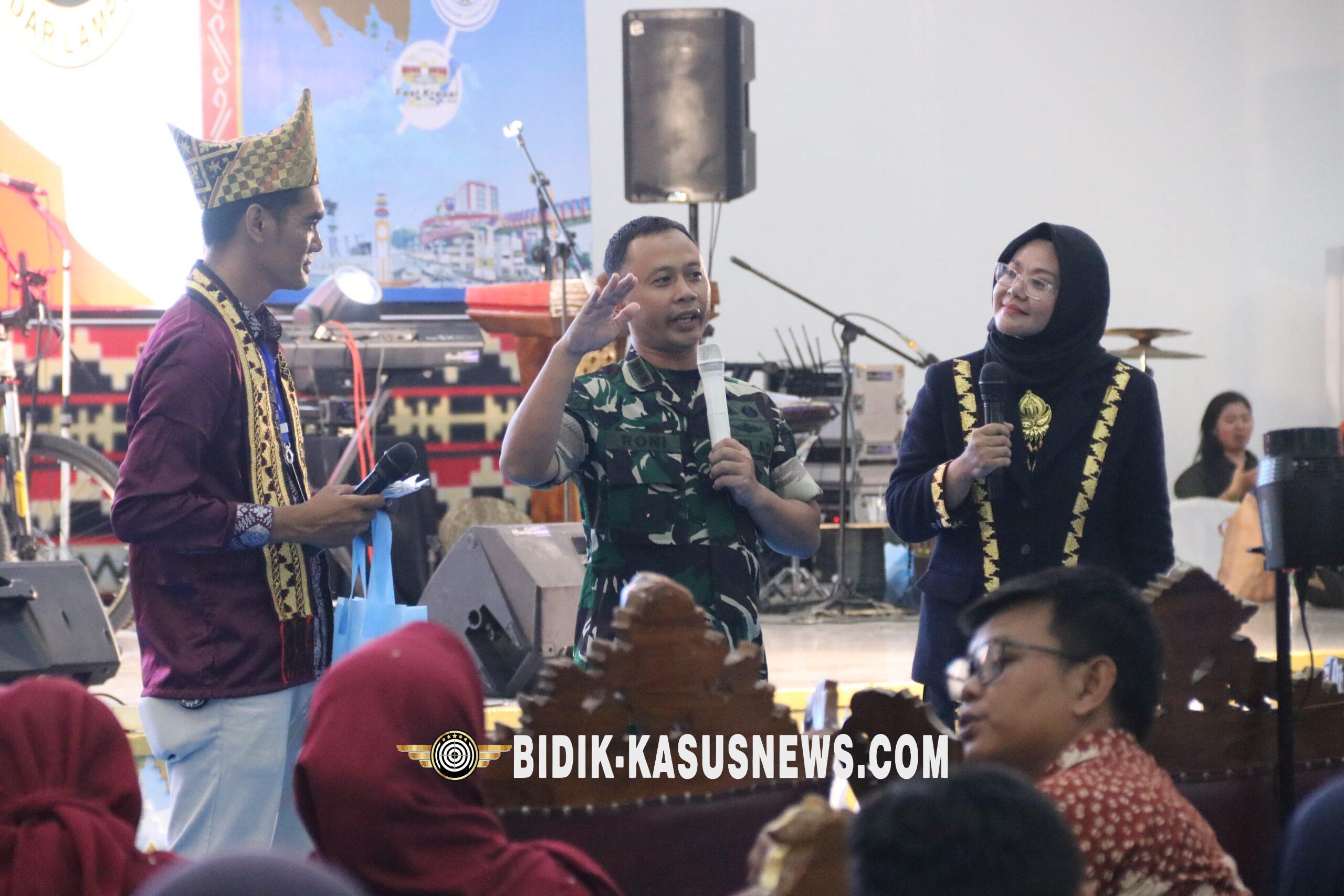 BANDAR LAMPUNG, BIDIK-KASUSNEWS.COM Komandan Kodim (Dandim) 0410/KBL, Kolonel Arm. Roni Hermawan, S.H., M.M., menjadi narasumber utama dalam talkshow interaktif bertajuk “Penguatan Bela Negara dalam Dunia Pendidikan” yang digelar di Gedung Graha Mandala, Kedaton, Bandar Lampung, pada Sabtu (8/11/2025). Acara yang dimulai pukul 15.00 WIB ini dihadiri oleh ratusan guru dan tenaga kependidikan se-Provinsi Lampung, serta sejumlah pejabat penting, antara lain Kapolresta Bandar Lampung, Kombes Pol. Alfred Jacob Tilukay, M.I.K., M.Si., dan Kabid 3 Dinas Pendidikan Kota Bandar Lampung, Mulyadi. Kehadiran mereka mencerminkan sinergi antara TNI, Polri, dan Pemerintah Daerah dalam memperkuat nilai-nilai kebangsaan melalui jalur pendidikan. Dalam pemaparannya yang berlangsung sejak pukul 16.30 WIB, Kolonel Roni Hermawan menegaskan bahwa Bela Negara bukan sekadar kewajiban militeristik, tetapi juga merupakan manifestasi kecintaan terhadap tanah air yang dapat diwujudkan oleh setiap warga negara, termasuk para pendidik. “Guru adalah pahlawan tanpa tanda jasa dan ujung tombak dalam menanamkan nilai-nilai kebangsaan kepada generasi penerus. Melalui peran Bapak dan Ibu guru, semangat cinta tanah air, rela berkorban, dan persatuan Indonesia dapat ditanamkan sejak dini,” ujar Dandim dengan penuh semangat. Lebih lanjut, Dandim memaparkan berbagai program Kodim 0410/KBL yang dapat disinergikan dengan dunia pendidikan dalam rangka memperkuat wawasan kebangsaan dan karakter generasi muda. Talkshow berlangsung hangat dan interaktif, ditandai dengan antusiasme peserta dalam sesi tanya jawab. Forum wartawan Kota Bandar Lampung juga turut hadir untuk meliput dan mendokumentasikan kegiatan tersebut. Menutup kegiatan, Dandim menyampaikan harapan agar kolaborasi antara TNI, Polri, dan Dinas Pendidikan terus berlanjut sebagai upaya nyata membentuk generasi muda yang cerdas, berkarakter, dan berintegritas tinggi. Seluruh rangkaian acara berlangsung aman, tertib, dan lancar hingga selesai, mencerminkan semangat kebersamaan dan komitmen bersama dalam membangun ketahanan nasional melalui dunia pendidikan. ( Agus)