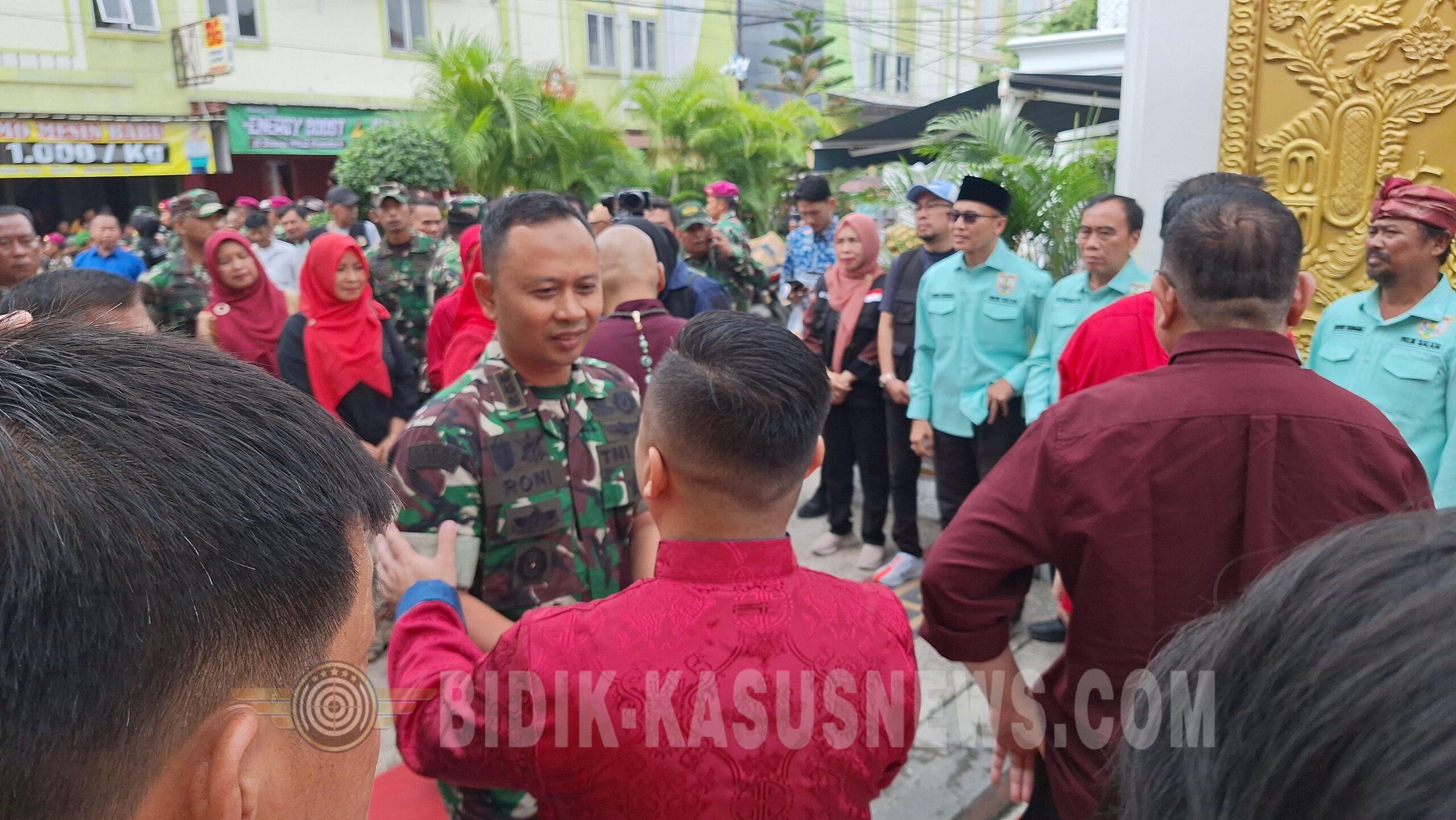 Selain menghadiri seremoni, Kolonel Roni juga turun langsung menyapa warga penerima bantuan sosial. Ia berdialog dengan masyarakat, mendengarkan aspirasi, hingga bercengkerama dengan anak-anak yang hadir bersama orang tua mereka. Suasana penuh keakraban terlihat sepanjang pembagian sembako berlangsung.