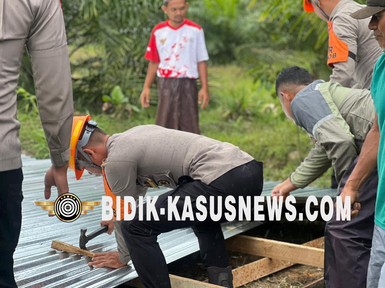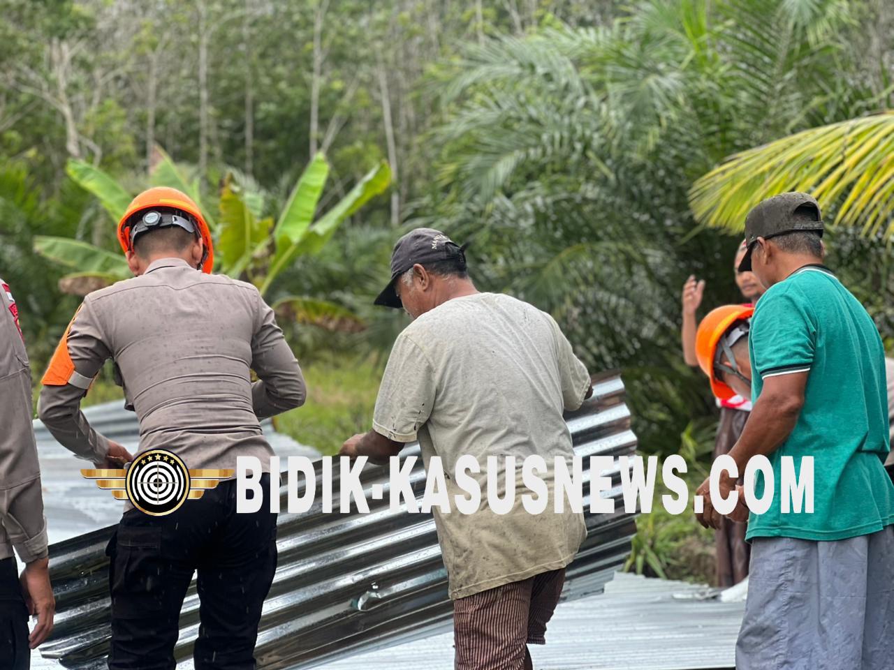 Tim dari Batalyon C Pelopor Satuan Brimob Kabupaten Sintang Kalbar Polda Kalimantan Barat bergerak cepat membantu warga yang rumahnya roboh akibat terpaan angin kencang di Jalan Sintang Pinoh Ransidakan Sintang, Kamis-20-November-2025 sore.