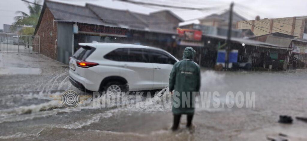 Akibatnya, air sempat meluap hingga ke halaman rumah warga, bahkan sebagian masuk ke dalam rumah yang berada di sepanjang bantaran jalan. Meski demikian, kondisi mulai berangsur membaik setelah hujan reda dan air perlahan surut.