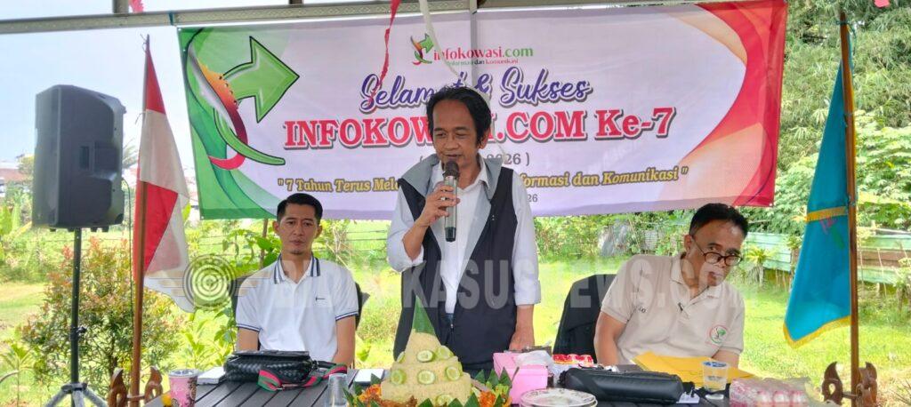 Dalam sambutannya, Pimpinan Redaksi/CEO Infokowasi.com, Yudi Suyudi, menyampaikan rasa syukur atas perjalanan tujuh tahun media yang ia pimpin. Ia menegaskan bahwa keberlangsungan Infokowasi.com tidak lepas dari komitmen terhadap kejujuran dan penyajian informasi yang akurat serta berimbang.