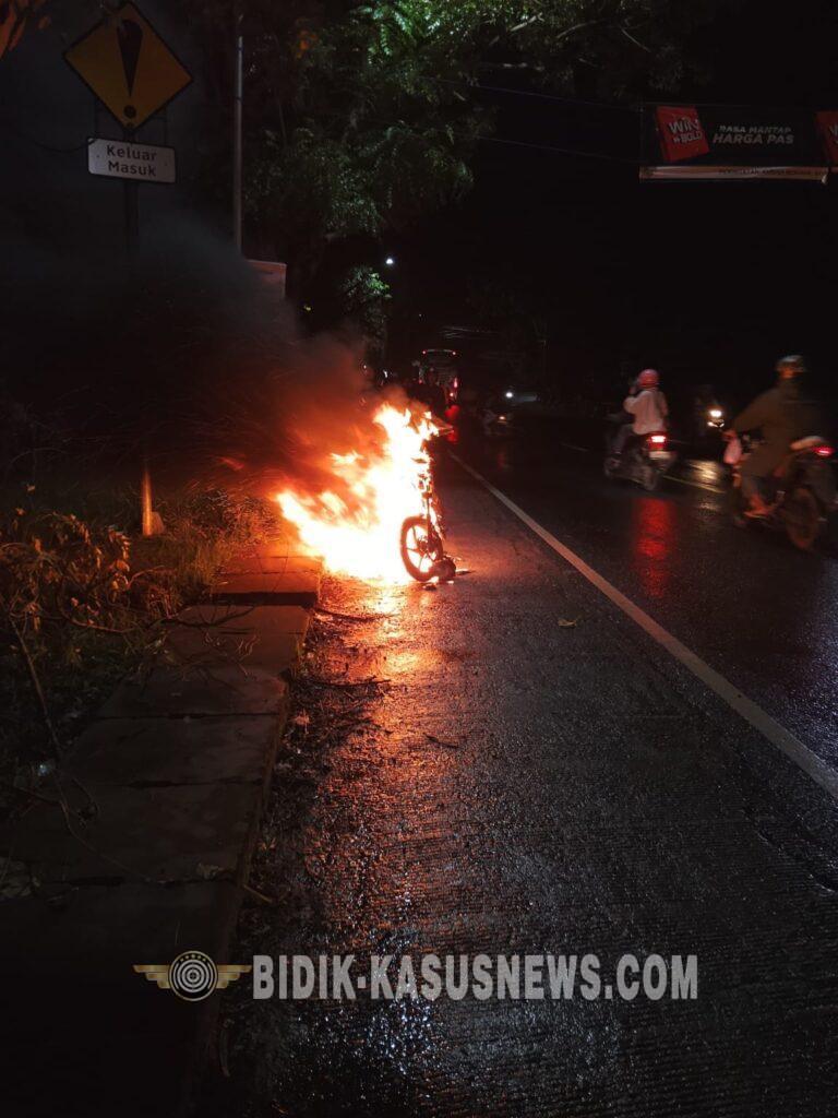 Benturan menyebabkan percikan api pada bagian mesin. Dalam kondisi mesin panas serta tidak tersedianya air maupun alat pemadam di sekitar lokasi, api dengan cepat membesar hingga membakar sepeda motor tersebut. Insiden ini sempat membuat arus lalu lintas terganggu dan memicu kepanikan pengguna jalan lain.