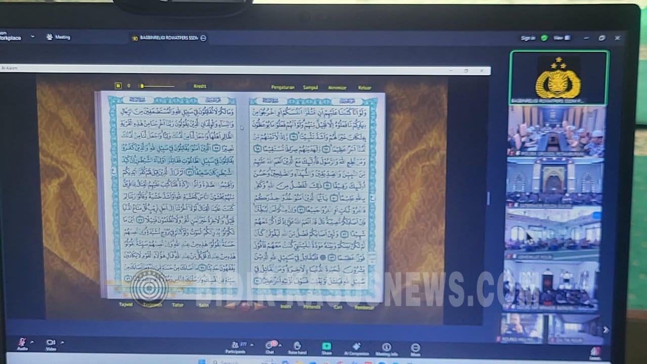Kegiatan yang dilaksanakan melalui Zoom Meeting tersebut terpusat dari Bagbinreligi Rowatpers SSDM Polri dan diikuti secara serentak oleh jajaran Polda serta Polres di seluruh Indonesia sepanjang bulan Ramadan 2026.