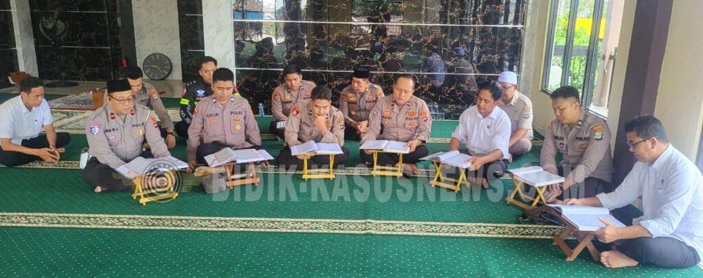 Di Polres Hulu Sungai Utara, kegiatan berlangsung khidmat di masjid lingkungan Mapolres, di mana para personel menyimak dan mengikuti lantunan ayat suci Al-Qur’an secara bersama-sama.
