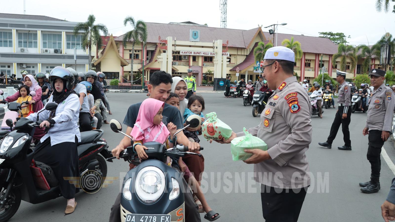 Kapolres Hulu Sungai Utara Bersama YKB Bagikan 300 Takjil di Bundaran Tugu Sholat Amuntai, Wujud Kepedulian Ramadan