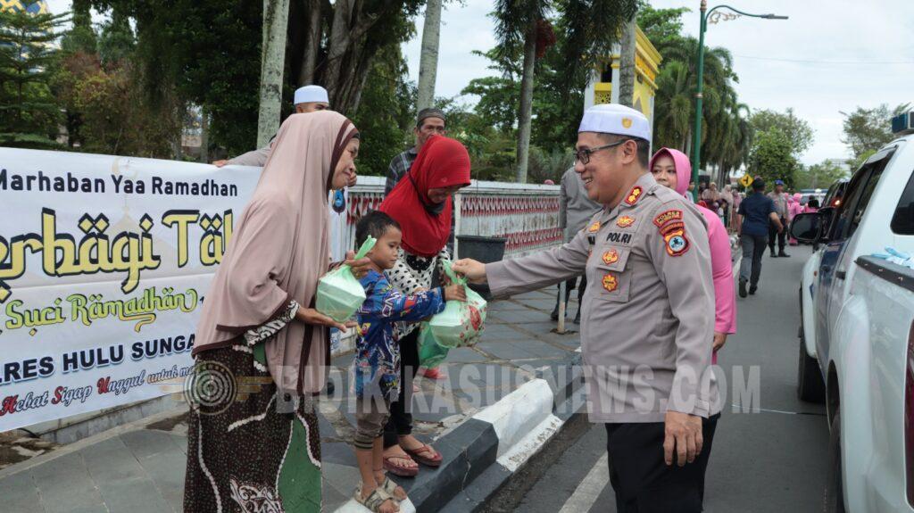 Kapolres Hulu Sungai Utara Bersama YKB Bagikan 300 Takjil di Bundaran Tugu Sholat Amuntai, Wujud Kepedulian Ramadan