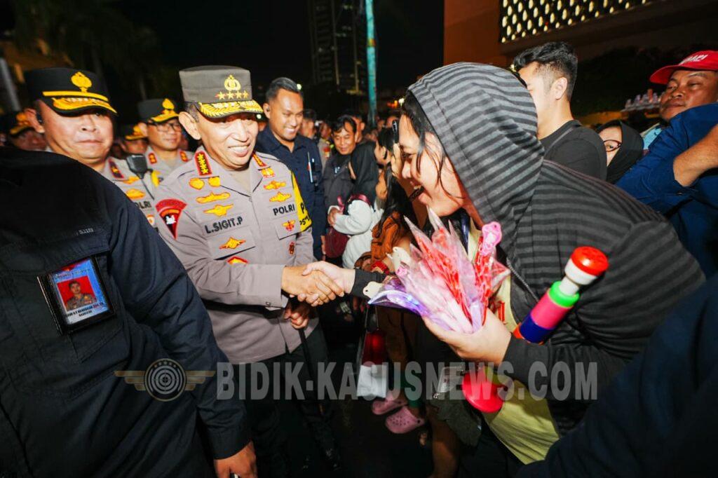Tak hanya memastikan keamanan, Sigit juga menyapa dan menyalami langsung masyarakat yang sedang menanti detik-detik pergantian tahun dari 2025 ke 2026. Kehadiran Kapolri turun langsung di tengah masyarakat merupakan wujud komitmen Polri yang humanis dan tak berjarak dengan seluruh lapisan elemen masyarakat.