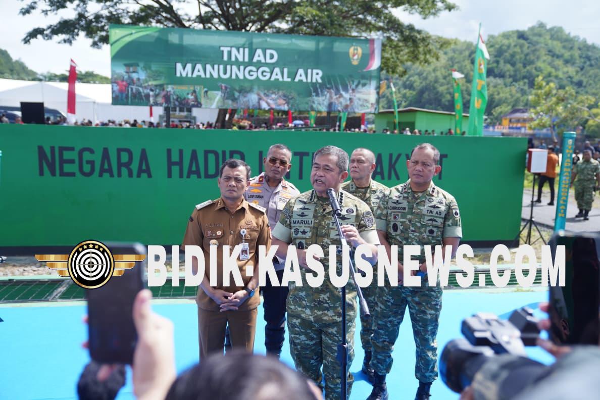 Dalam sambutannya, Jenderal Maruli mengungkapkan rasa syukur atas keberhasilan program pengairan di Kecamatan Rawalo yang kini mampu mengairi sekitar 1.004 hektare lahan pertanian. Dengan tambahan pasokan air ini, para petani disebut berpeluang meningkatkan intensitas tanam hingga dua bahkan tiga kali dalam setahun.