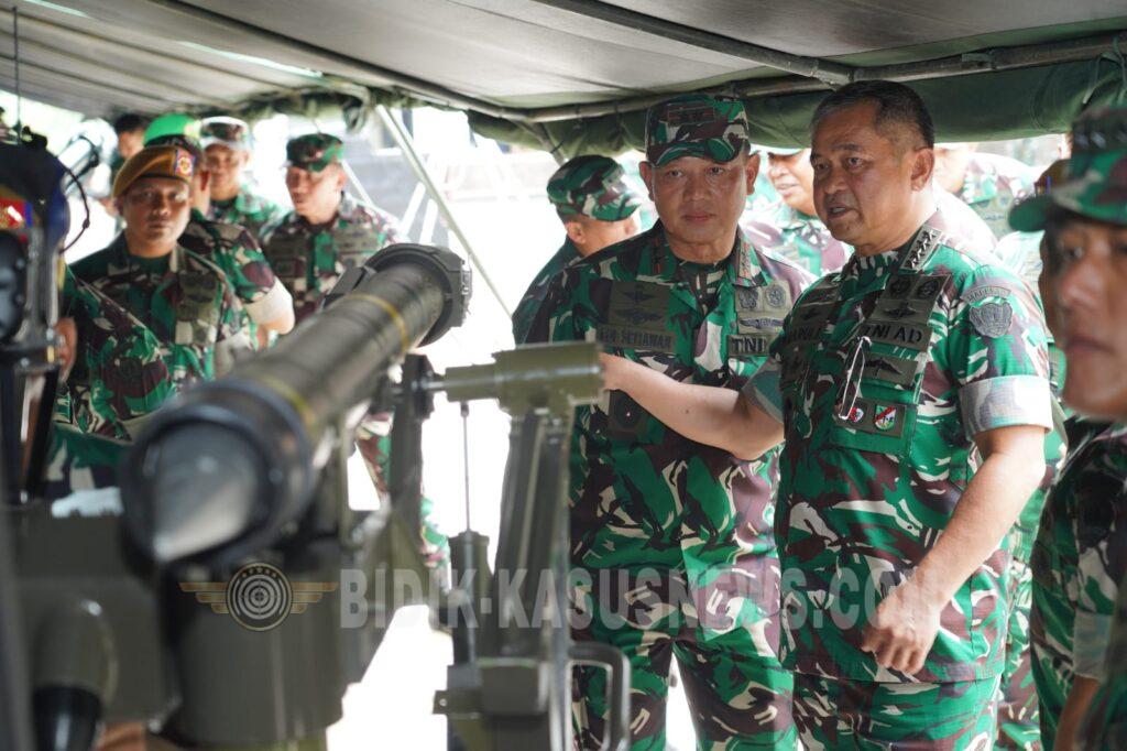 JAKARTA, BIDIK-KASUSNEWS.COM – Kepala Staf Angkatan Darat (Kasad) Jenderal TNI Maruli Simanjuntak, M.Sc., meninjau _display_ inovasi hasil Penelitian dan Pengembangan Pertahanan (Litbanghan) TNI Angkatan Darat yang ditampilkan Dinas Penelitian dan Pengembangan TNI AD (Dislitbangad) di Resimen Latihan Tempur (Menlatpur) Kostrad, Sanggabuana, Karawang, Jawa Barat, Kamis (22/1/2026). Peninjauan ini dititikberatkan pada pemanfaatan hasil Litbanghan untuk memperkuat sistem latihan dan mendukung kesiapan operasi prajurit TNI AD.