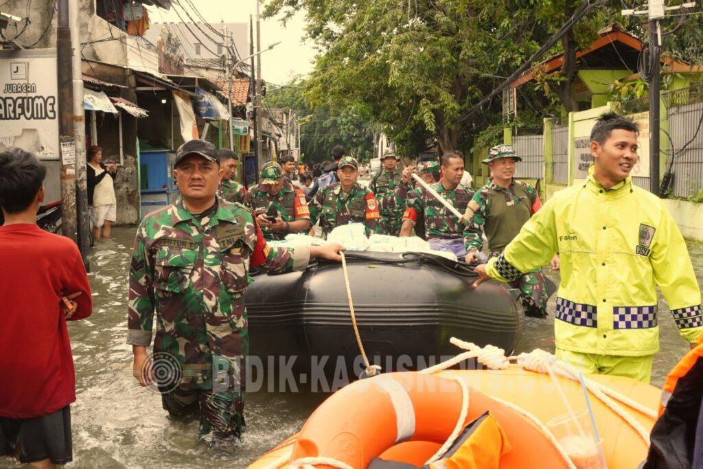 Banjir yang terjadi akibat curah hujan tinggi dalam beberapa hari terakhir menyebabkan meluapnya aliran kali dan merendam permukiman warga. Menyikapi kondisi tersebut, personel Kodim 0502/Jakarta Utara dan unsur BKO dari Yonif TP 843 PYV dan Yonif TP 899/BSG segera turun ke lapangan untuk membantu evakuasi warga serta penanganan dampak banjir.