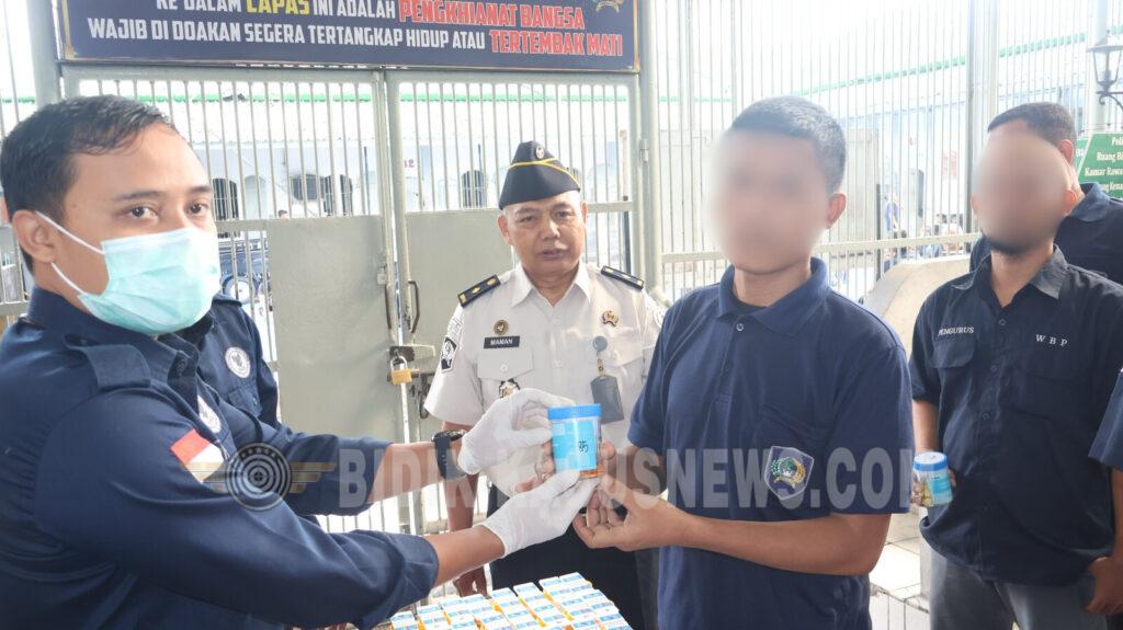 Usai apel, dilakukan tes urine kepada 70 orang petugas Lapas Kelas IIB Sukabumi, 10 orang warga binaan, serta 10 orang peserta magang.