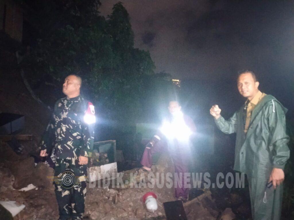 Bandar Lampung, Bidik-kasusnews.com, Hujan deras yang mengguyur Kota Bandar Lampung sejak sore hingga larut malam memicu bencana tanah longsor di kawasan padat penduduk Jalan Hayam Wuruk, Gang Mawar, Kelurahan Kebon Jeruk, Kecamatan Tanjung Karang Timur (TKT), Selasa (14/4/2026) pukul 22.50 WIB. Longsor yang terjadi tepat di samping kediaman Bapak Suntono (54) itu mengancam keselamatan empat jiwa dan menimbulkan kerugian material ditaksir mencapai Rp50 juta.