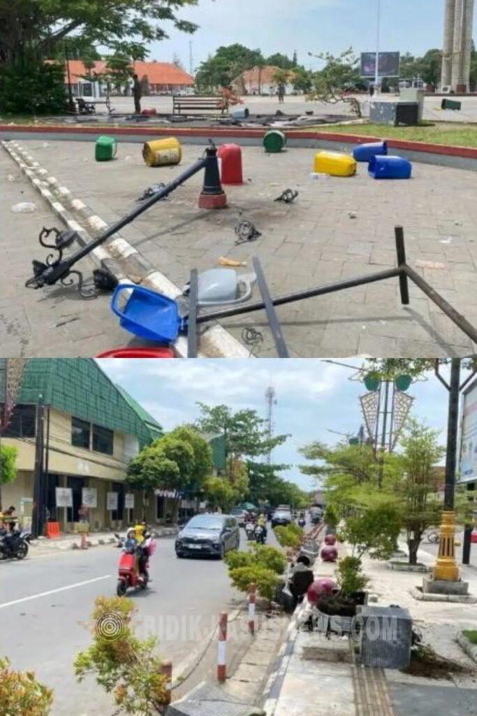 Berdasarkan pantauan di lapangan, sejumlah fasilitas fas bunga, tiang lampu taman, dan sarana publik lainnya mengalami kerusakan signifikan. Pemerintah Daerah (Pemda) Indramayu memperkirakan kerugian materil akibat ulah oknum demonstran ini mencapai ratusan juta rupiah.