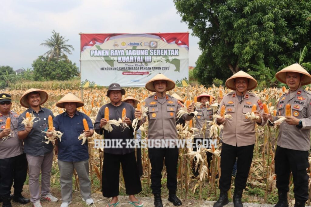 Majalengka Bidik-kasusnews.com,.Kapolres Majalengka AKBP Willy Andrian, S.H., S.I.K., M.H. menghadiri kegiatan Panen Raya Jagung Serentak Kuartal III dalam rangka mendukung program swasembada pangan tahun 2025. Acara tersebut digelar di Kelurahan Cicurug, Kecamatan Majalengka, Kabupaten Majalengka pada Sabtu (27/9/2025).